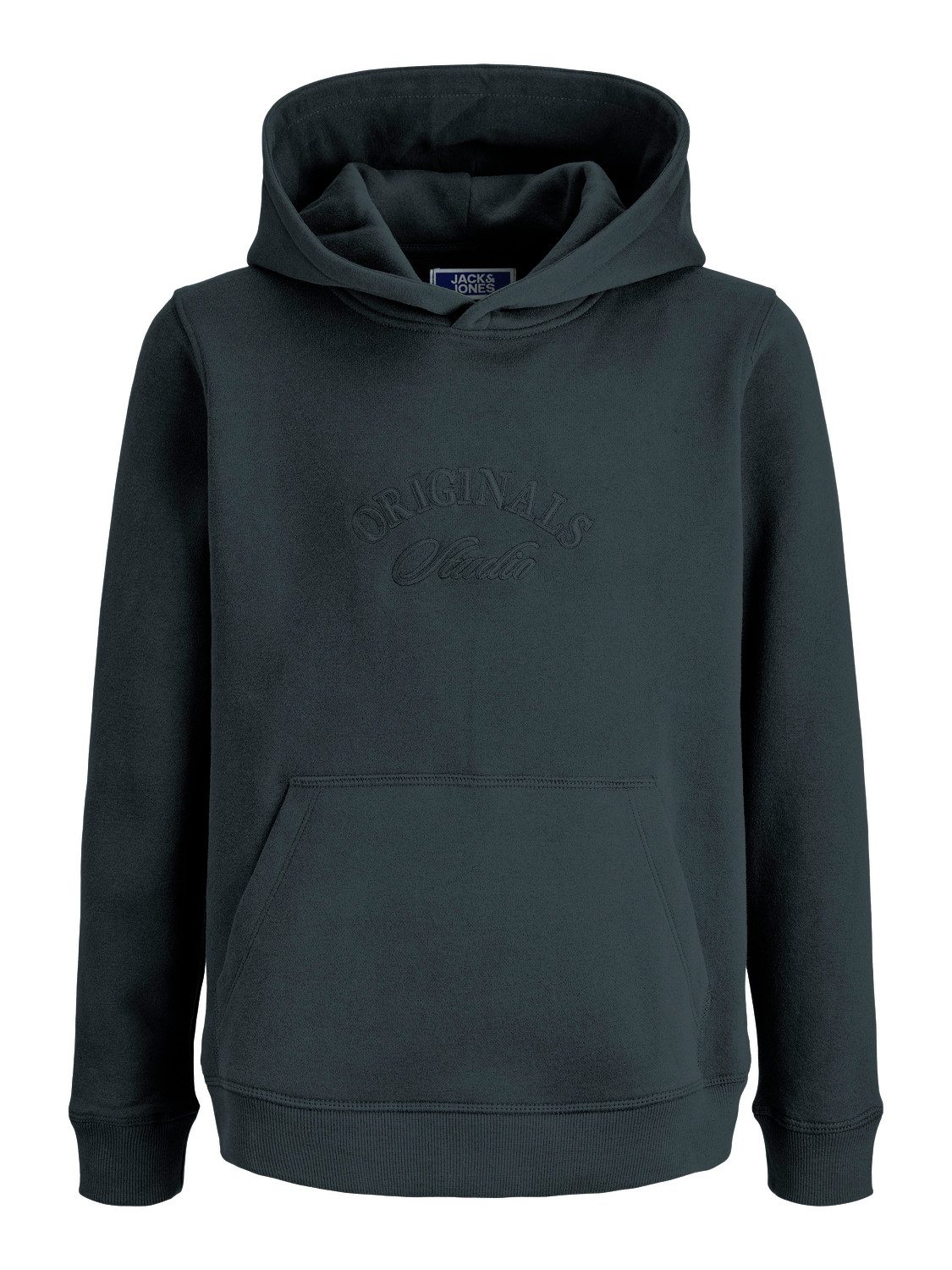 Das Kapuzensweatshirt »JORBLEECKER BRANDING SWEAT HOOD BF JNR« von Jack & Jones Junior lockert jeden Look auf und eignet sich für ein lässiges Athleisure-Outfit. Es wirkt mit dem Aufdruck stylisch und cool. Die langen Ärmel enden in einem Rippbündchen. Das Sweatshirt hat einen Rundhalsausschnitt und ist locker geschnitten, sodass sich Teenies frei bewegen können. Mit der Kängurutasche, die vorne am Bauch aufgenäht ist, ist der bequeme Hoodie-Look komplett.
