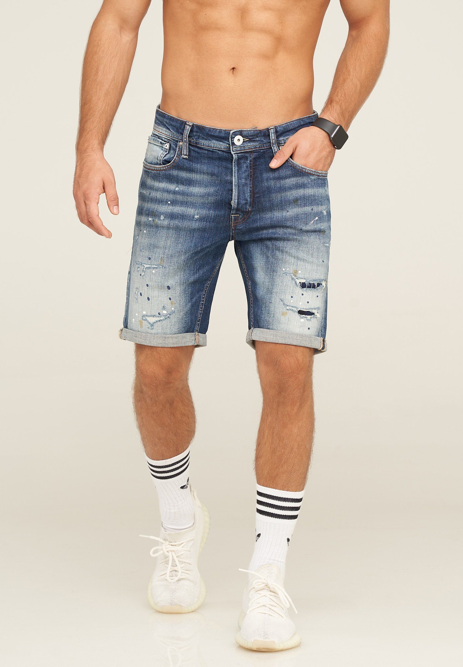 Perfekt geeignet für warme Tage ist diese Jeans-Shorts von Jack&Jones. Das Modell besteht aus Baumwolle und Elasthan und bietet einen angenehmen Tragekomfort. Es hat eine coole Used-Waschung und wird verziert mit Destroyed-Elementen - so entsteht ein rockiger Look, der sofort die Blicke auf sich zieht. Ein tolles Highlight für den Sommer.