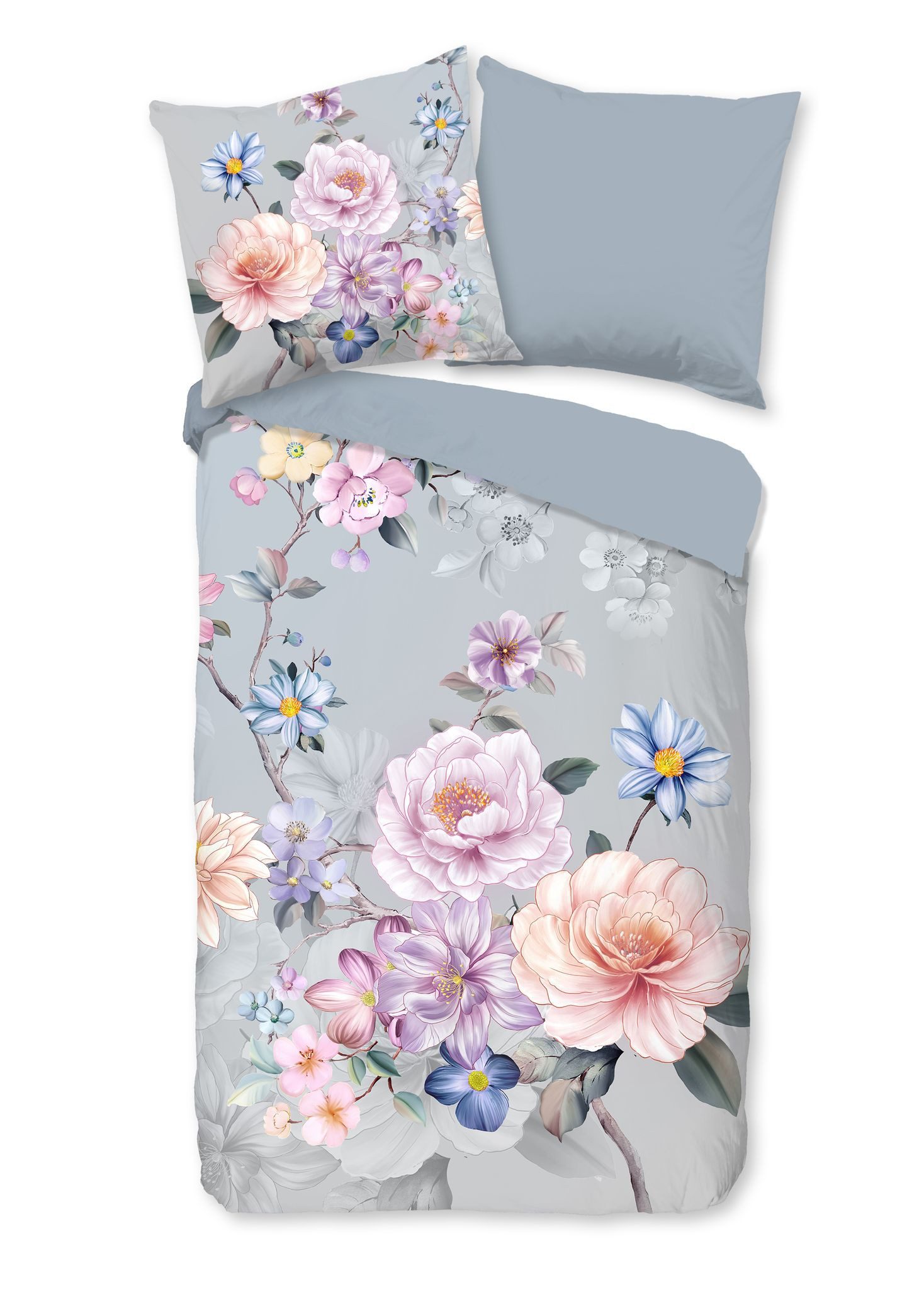 2 -teilige Flanell- Winterbettwäsche "Blütenzauber Blaugrau" in 135 x 200 cm