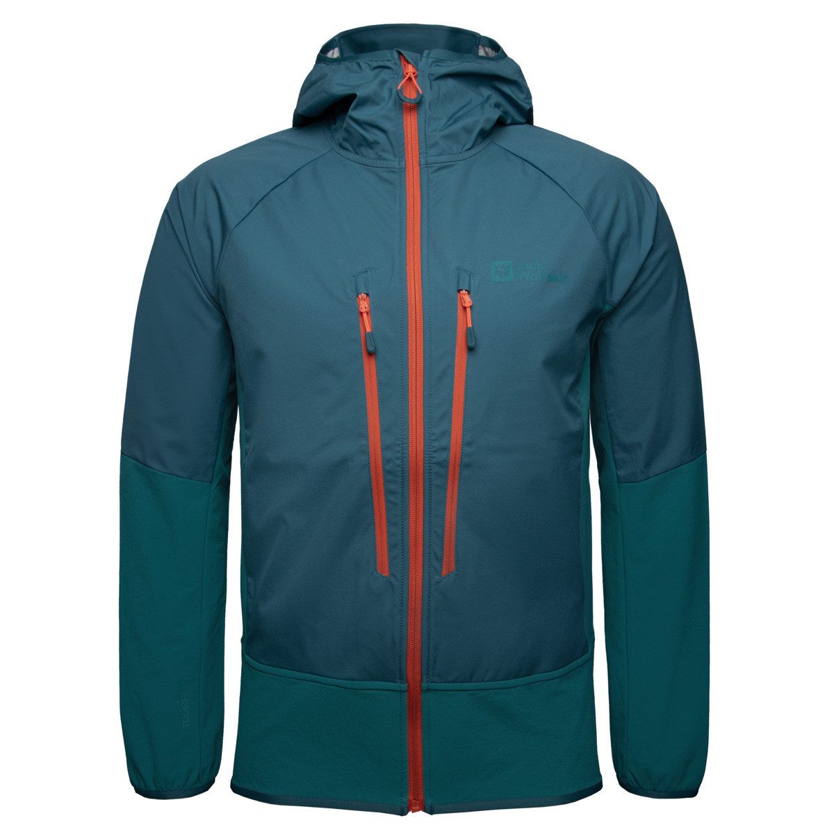 Die Jack Wolfskin Alpspitze Hoody Jkt Softshelljacke Herren kombiniert Funktionalität mit stilvollem Design und ist somit idealer Begleiter für Arbeit und Freizeit. Hergestellt aus Texashield Pro Softshell Light Gewebe bleibst du warm und gleichzeitig vor leichtem Niederschlag geschützt. Das doppelt gewebte, robuste und elastische Material macht die Jacke nicht nur winddicht und wasserabweisend, sondern auch hoch atmungsaktiv, sodass du dich auf intensiven Touren stets wohlfühlst. Mit der RECCO-Technologie ausgestattet, bietet die Jacke zusätzliche Sicherheit. Das Lawinenverschütteten-Suchsystem kann im Notfall eine schnellere Rettung im Gelände ermöglichen. Die RECCO-Reflektoren funktionieren ohne Batterien. Praktische Belüftungsreißverschlüsse an den Achseln sorgen für eine ideale Temperaturregulation. Die Jacke ist mit praktischen Reißverschluss-Taschen auf der Brust ausgestattet, die sicheren Stauraum für deine Wertsachen bieten. Die fest mit der Jacke verbundene Kapuze schützt dich vor Wind und Wetter.