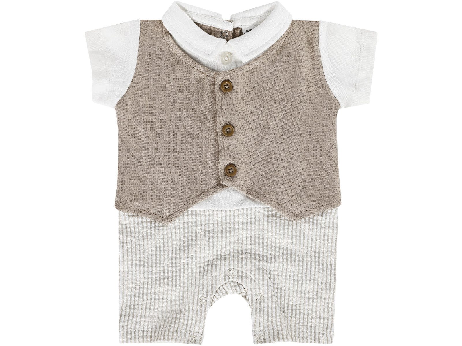 Der festliche Overall von Jacky ist ein stilvoller und praktischer Einteiler für Babys und Jungen, ideal für besondere Anlässe wie Familienfeiern, Hochzeiten oder Taufen. Dieser kurzärmlige Overall kombiniert ein elegantes, dezentes Oberteil mit gemusterten Hosen, die zusammen einen charmanten und festlichen Look ergeben. Ausgestattet mit praktischen Druckknöpfen im Schritt, ermöglicht der Anzug ein einfaches An- und Ausziehen sowie schnelle Windelwechsel. Gefertigt aus hautfreundlichen Materialien, bietet der Overall sowohl Komfort als auch Langlebigkeit, was ihn zu einer ausgezeichneten Wahl für die Garderobe deines Babys macht.