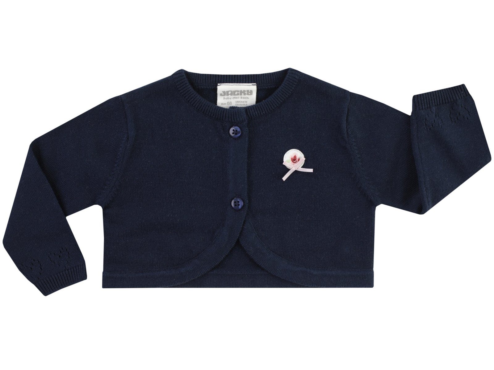 Diese schicke, kurze Strickjacke von Jacky lässt sich gut mit festlicher Kleidung kombinieren.