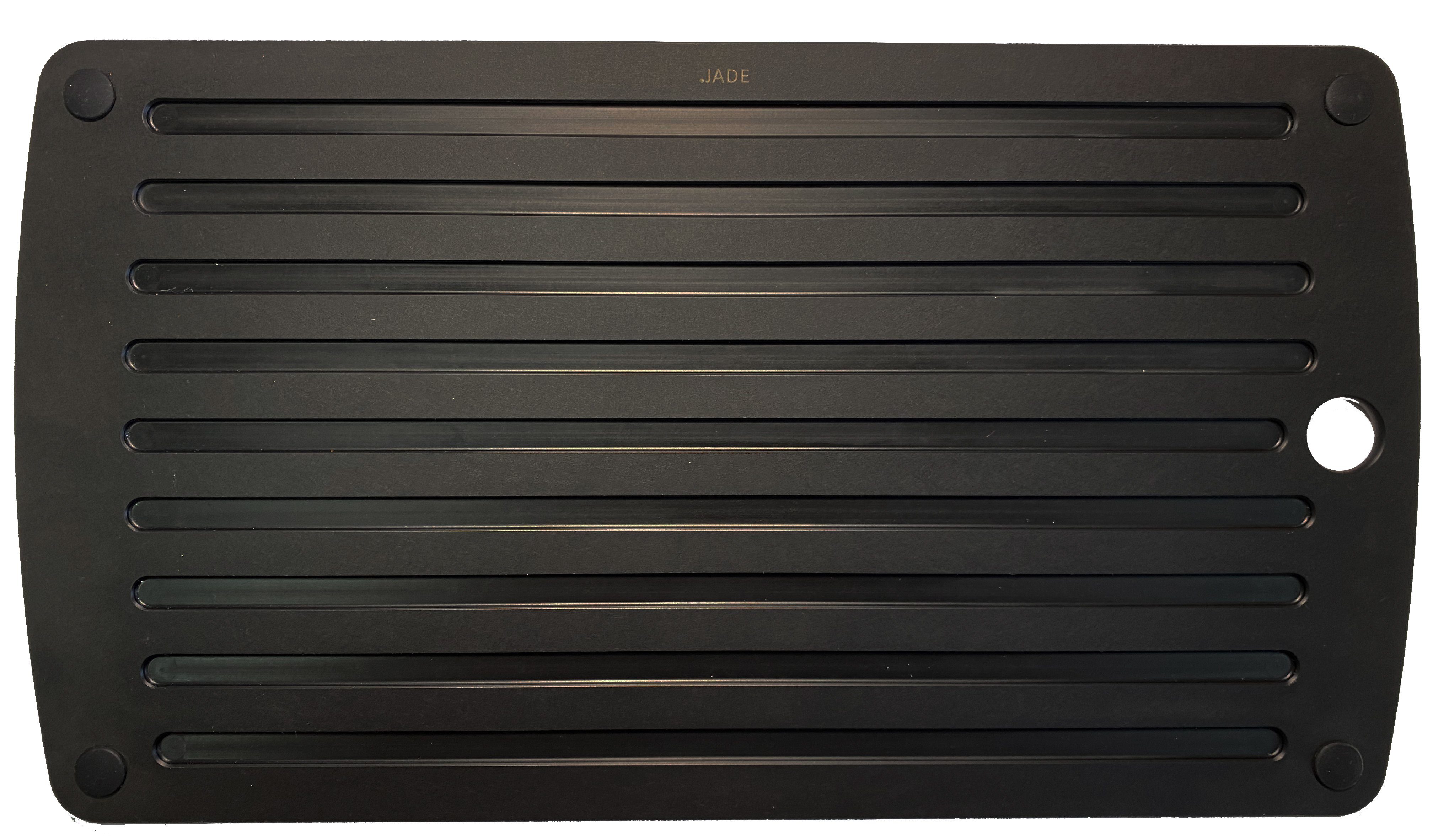 SCHWARZE DIAMANTEN FÜR IHRE KÜCHE Die JADE Schneidebretter und Tools sind die perfekten Helfer für den täglichen Gebrauch - sowohl zum Zubereiten als auch zum Servieren von Speisen. Zum Portfolio gehören vielseitige Schneidebretter mit und ohne Saftrille und rutschfesten Füßen sowie verschiedene praktische Küchenhelfer. Das exklusive, schwarze und sehr robuste Material ist ein porenfreies, spülmaschinenfestes, langlebiges und gleichzeitig messerschonendes Zellulose-Laminat. Verbundstoffe wie dieser werden seit über 75 Jahren in gewerblichen Küchen und Restaurants verwendet und erfüllen weltweit die höchsten Ansprüche von Köchen und Küchenchefs. Langlebigkeit, hohe Qualität und gutes Design bilden die Grundlage der Marke JADE. Deshalb sind die Schneidebretter und Küchenhelfer.