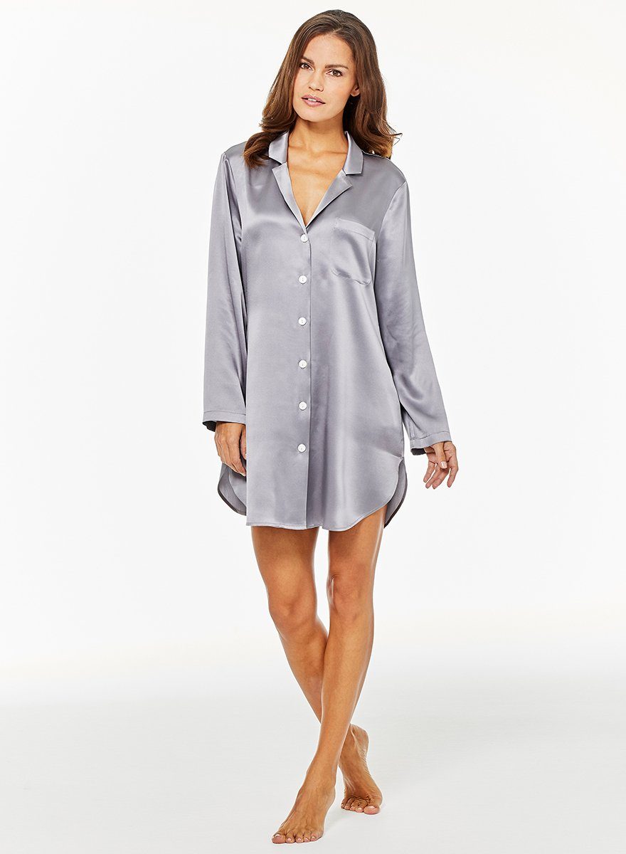 Ein traumhafter Klassiker aus verführerisch zartem Seidensatin. Das durchgeknöpfte Seidennachthemd Stella ist mit einer aufgesetzten Tasche und einem feinen, abgerundeten Saum verarbeitet. Lässig im Boyfriend Look geschnitten, umschmeichelt das langärmelige Seiden Schlafhemd angenehm Ihre Silhouette.