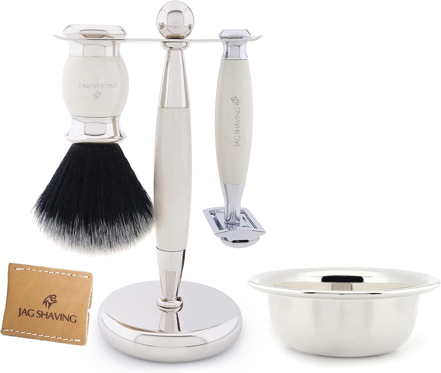 Hinweise | Elegantes 5-teiliges Rasierset mit Rasierer, Pinsel, Rasiereretui und Ständer, ideal für die traditionelle Nassrasur. Ein perfektes Geschenk und ein unverzichtbares Pflegeprodukt. |
