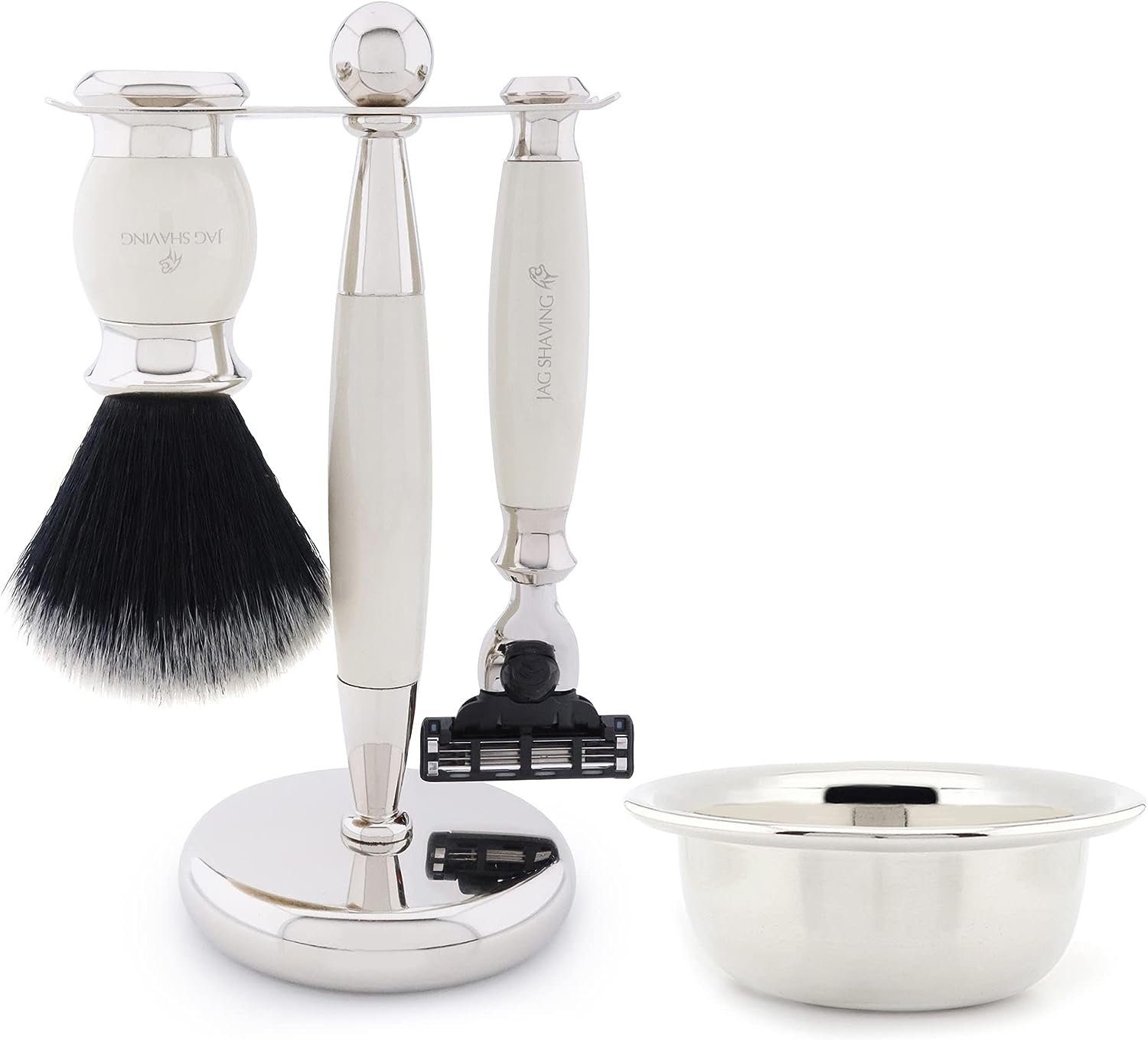 Hinweise | Elegantes 4-teiliges Rasierset mit Rasierer, Pinsel, und Ständer, ideal für die traditionelle Nassrasur. Ein perfektes Geschenk und ein unverzichtbares Pflegeprodukt. |