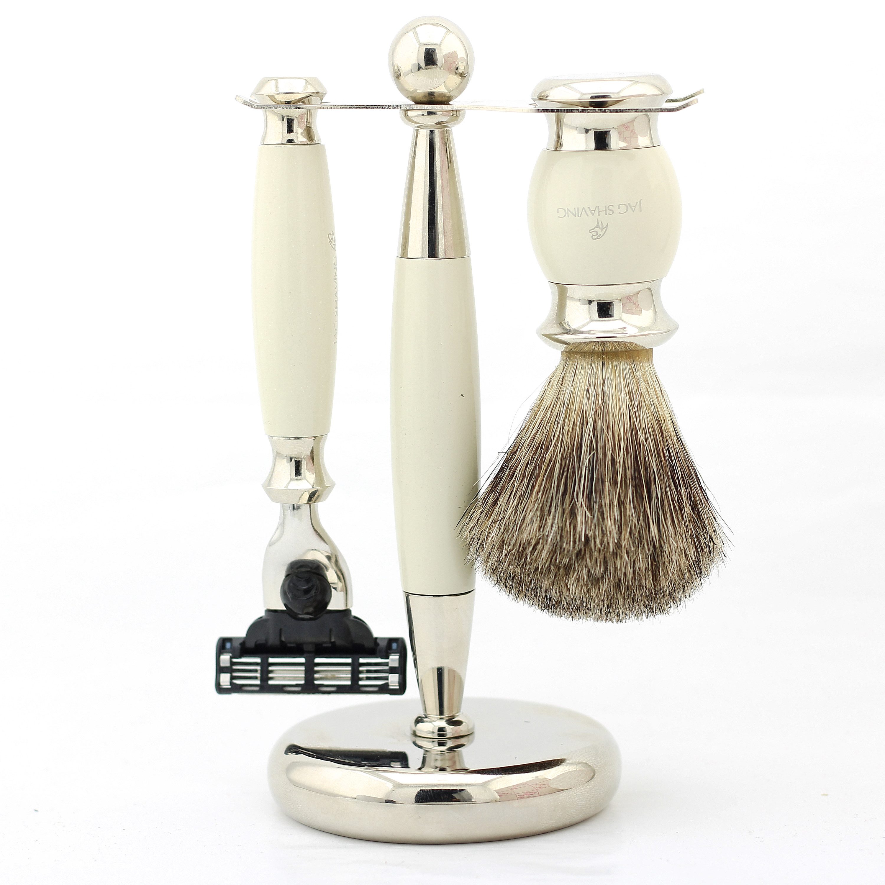 Ausstattung | Gillette Mach 3 Rasierer 100 % Dachshaar-Rasierpinsel Rasierständer |