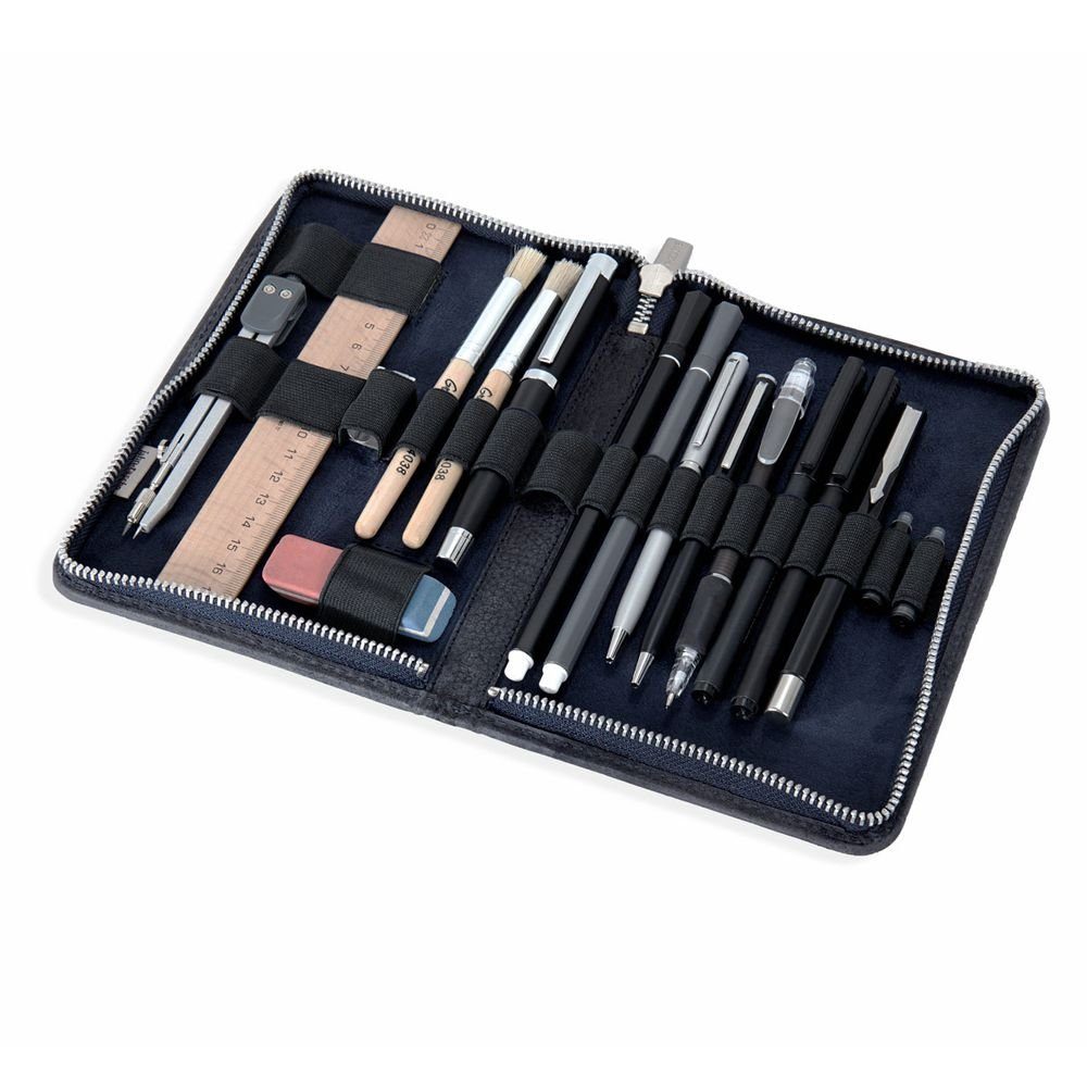Das gefütterte Leder-Etui besteht wie die Taschen ebenfalls aus unempfindlichem Büffelleder und ist mit robusten Reißverschlüssen versehen. So wie die genannten Aktentaschen ist also auch das Federmäppchen sehr widerstandsfähig und steckt einiges weg, selbst bei wenig achtsamer Handhabung im Alltag. Das heißt, auch bei täglichem Gebrauch werden Sie mit dem hochwertigen Mäppchen lange Ihre Freude haben.