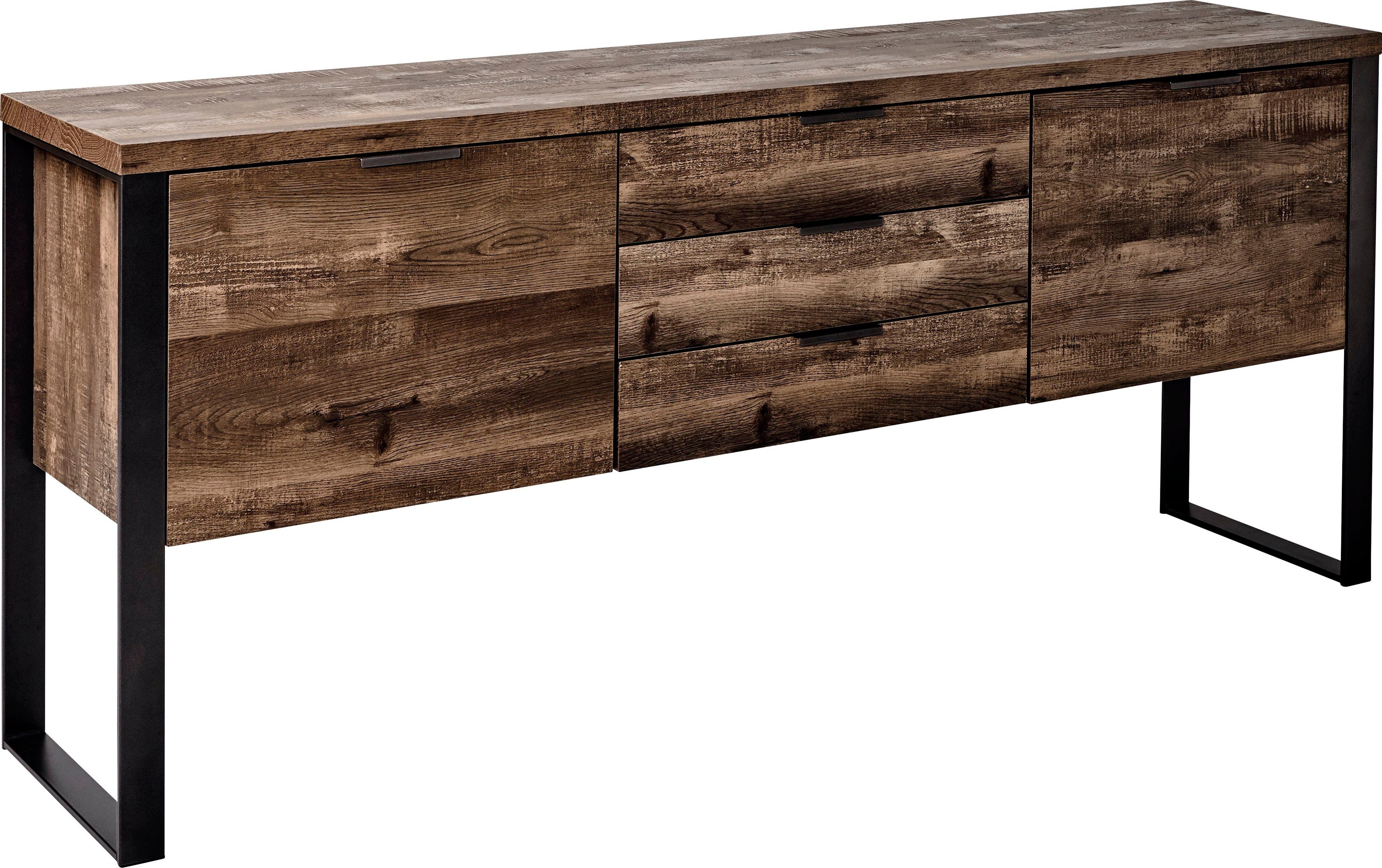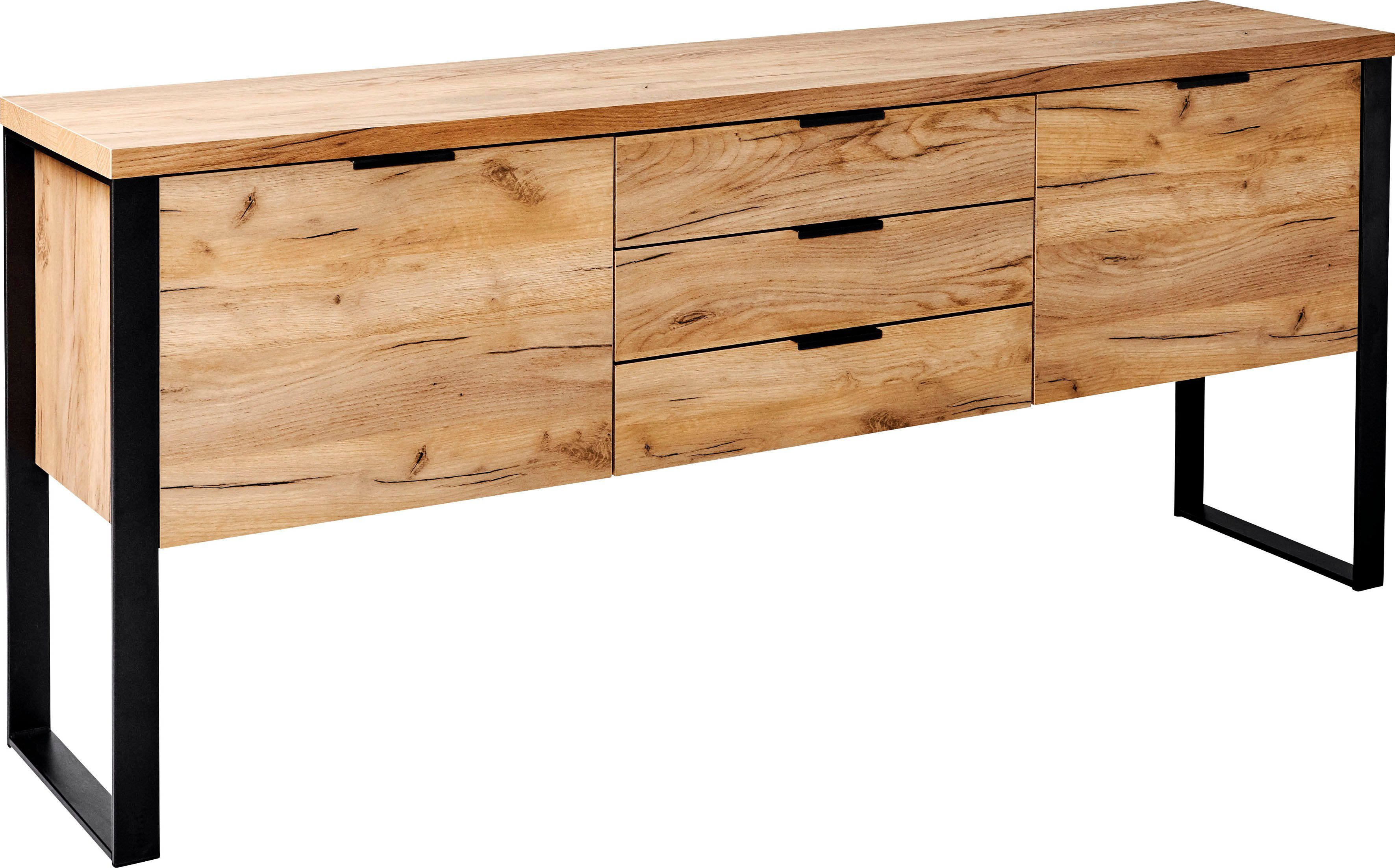 Der Holzwerkstoff, aus dem dieses Sideboard besteht, überzeugt mit seiner Stabilität und Tragfähigkeit, wobei die Oberfläche schön ebenmäßig und widerstandsfähig ist. Die stilvollen Relinggriffe aus Metall sind stabil und nutzen sich daher nicht so schnell ab.