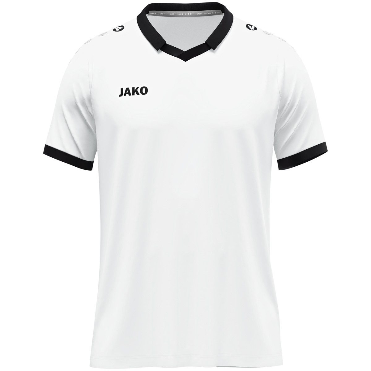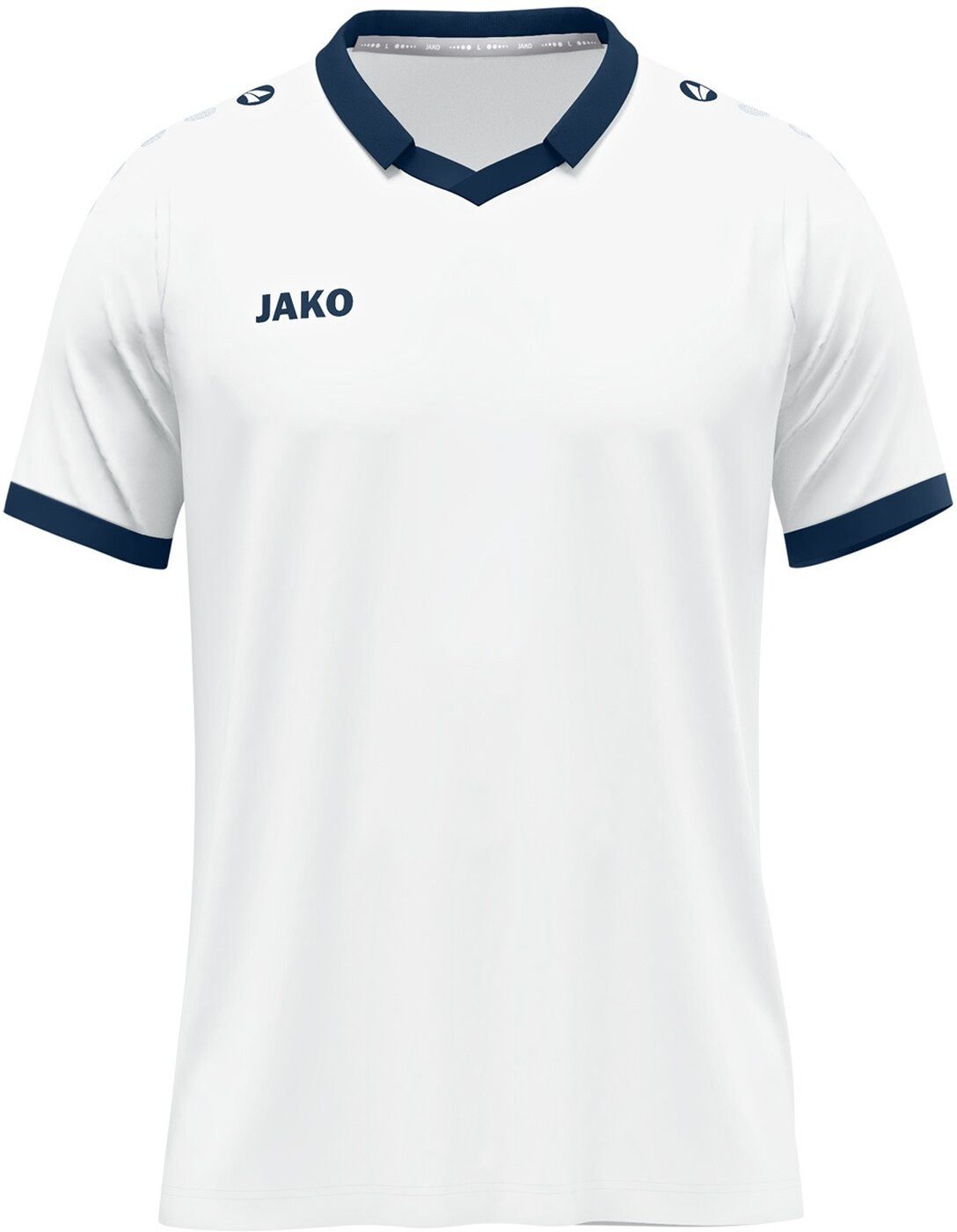 Produktart: Teamsport-Trikot | Matchwear Farbe: Weiszlig; / Rot Grouml;szlig;en: fuuml;r Herren Lieferumfang: 1 Stuuml;ck Nachbestellbar bis: 2028 Armlauml;nge: kurz Auml;rmelbauml;ndchen und Ausschnitt in Kontrastfarbe V-Ausschnitt mit Umschlagkragen Schultern mit raglan-auml;hnlichem Formschnitt Ruuml;cken mit Struktur JAKO-Logo wertig aufgedruckt Эко-товар: mit recyceltem Polyester Material: 100% Polyester
