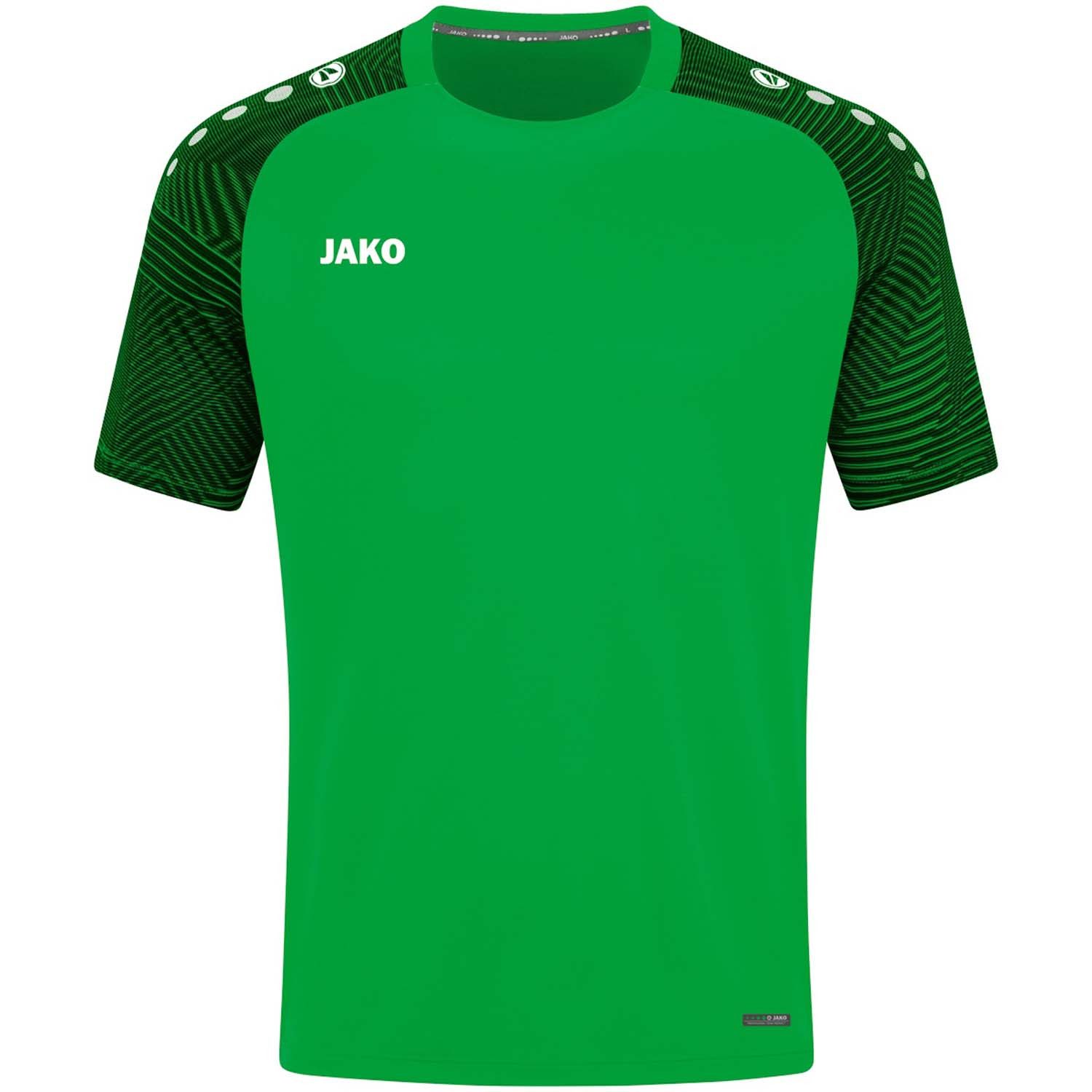 Jako Herren T-Shirt Performance. Das T-Shirt aus unserer Teamline Performance besticht durch die grafischen und dynamischen Elemente im Ärmel aus Jacquard. Das JAKO T-Shirt Performance besteht zu 100 % aus recyceltem Polyester. Durch das Polyester-Micro-Mesh ist das Shirt besonders atmungsaktiv und schnelltrocknend. Der Kragen ist mit einem Ripp-Einsatz ausgestattet. Polyester-Micro-Mesh. Ärmel aus Jacquard. Kragen mit Ripp-Einsatz. Material: 100% Polyester.
