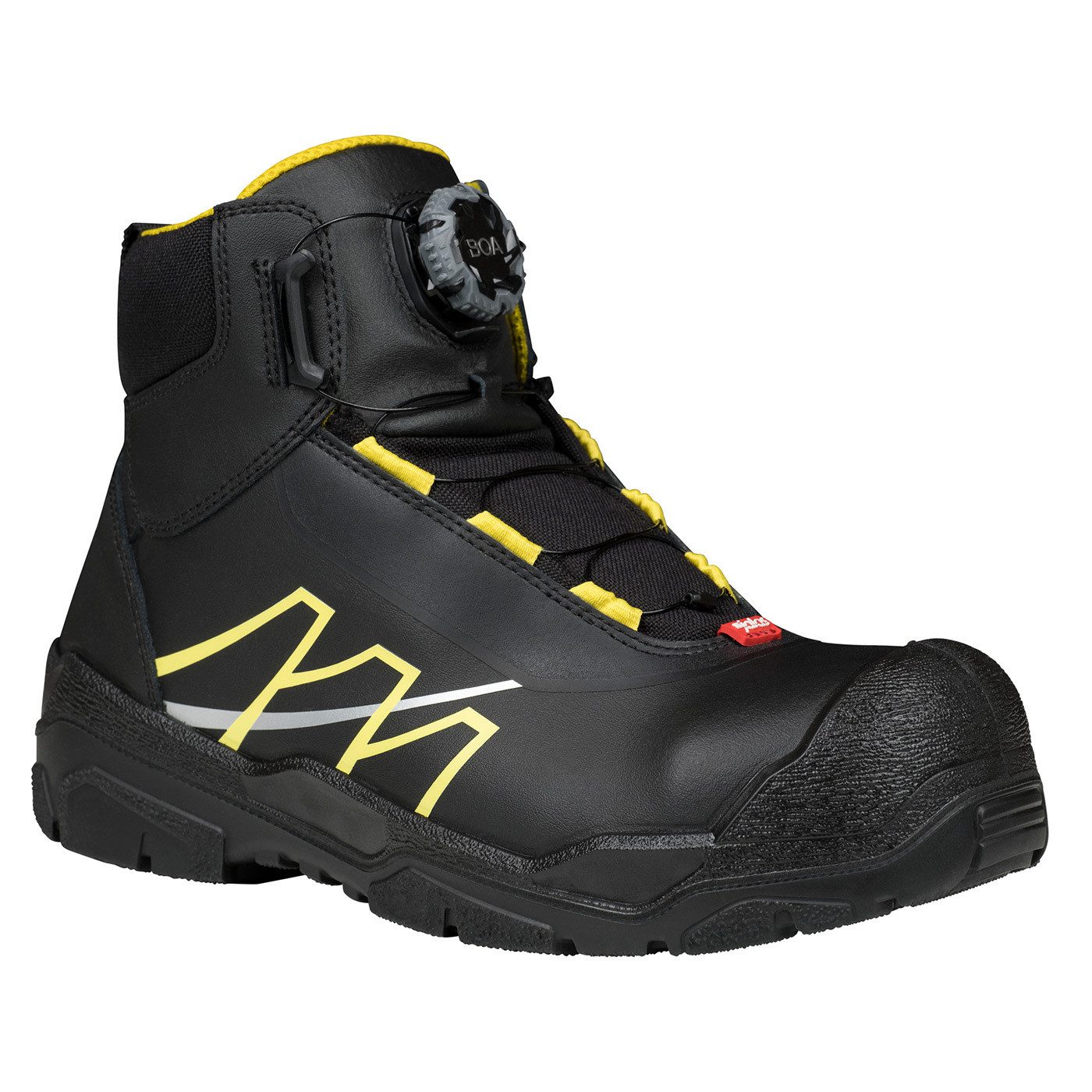 Produkteigenschaften: - BOA® Fit System - DGUV 112-191 - ProNose Zehenkappenverschleißschutz - Antistatische Eigenschaften - wasserabweisend - Hitze- und ölbeständige Laufsohle - PORON® XRD®: Ergothan Stoßdämfungssystem