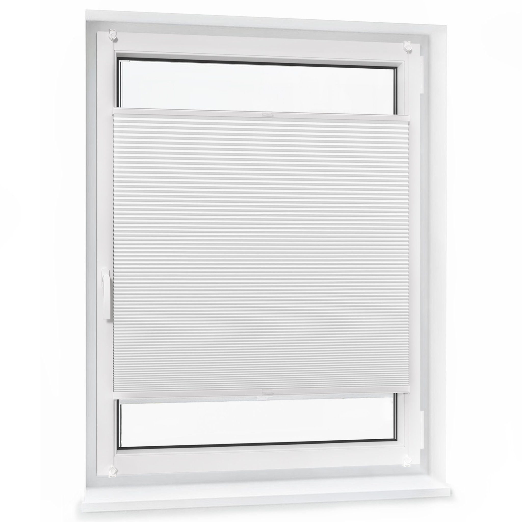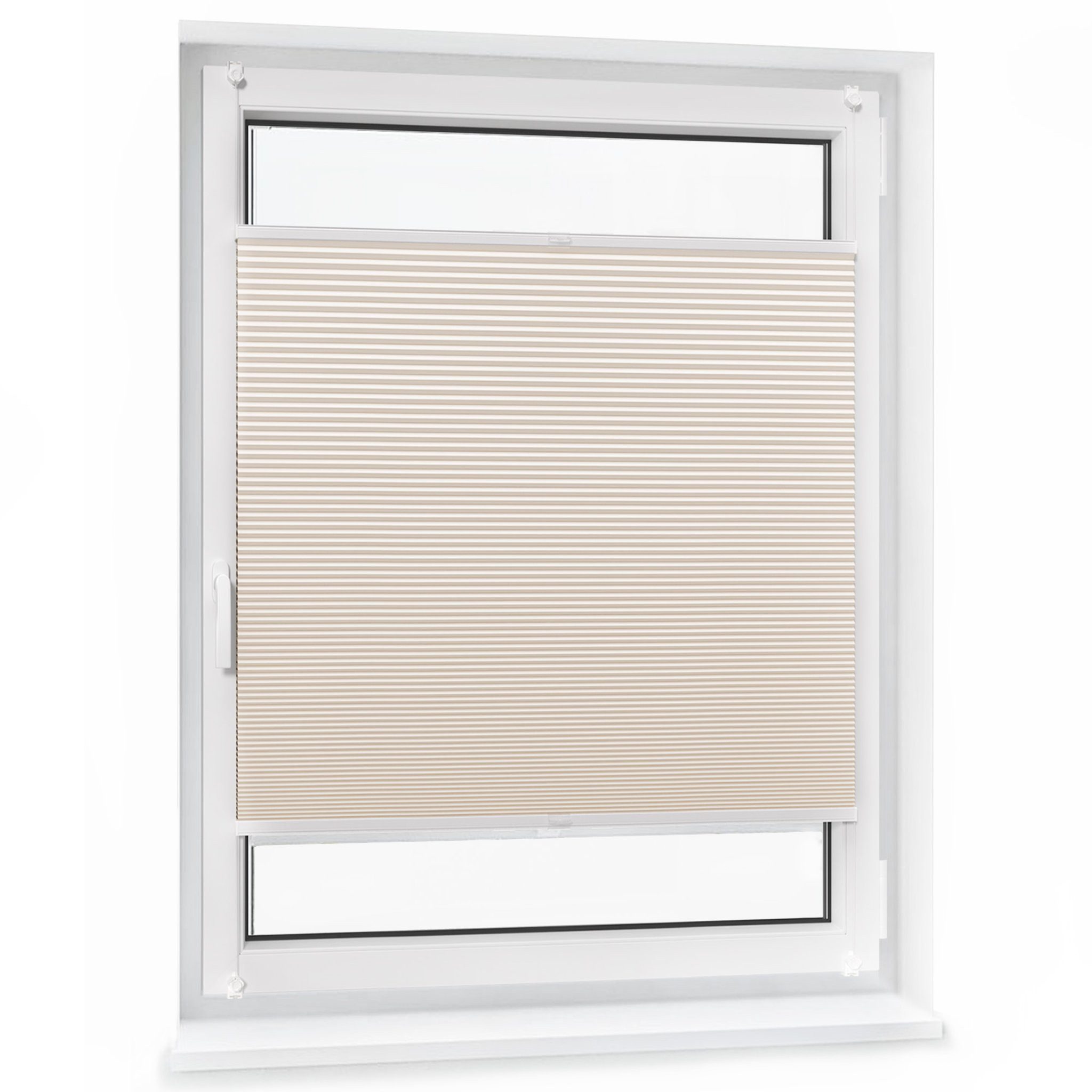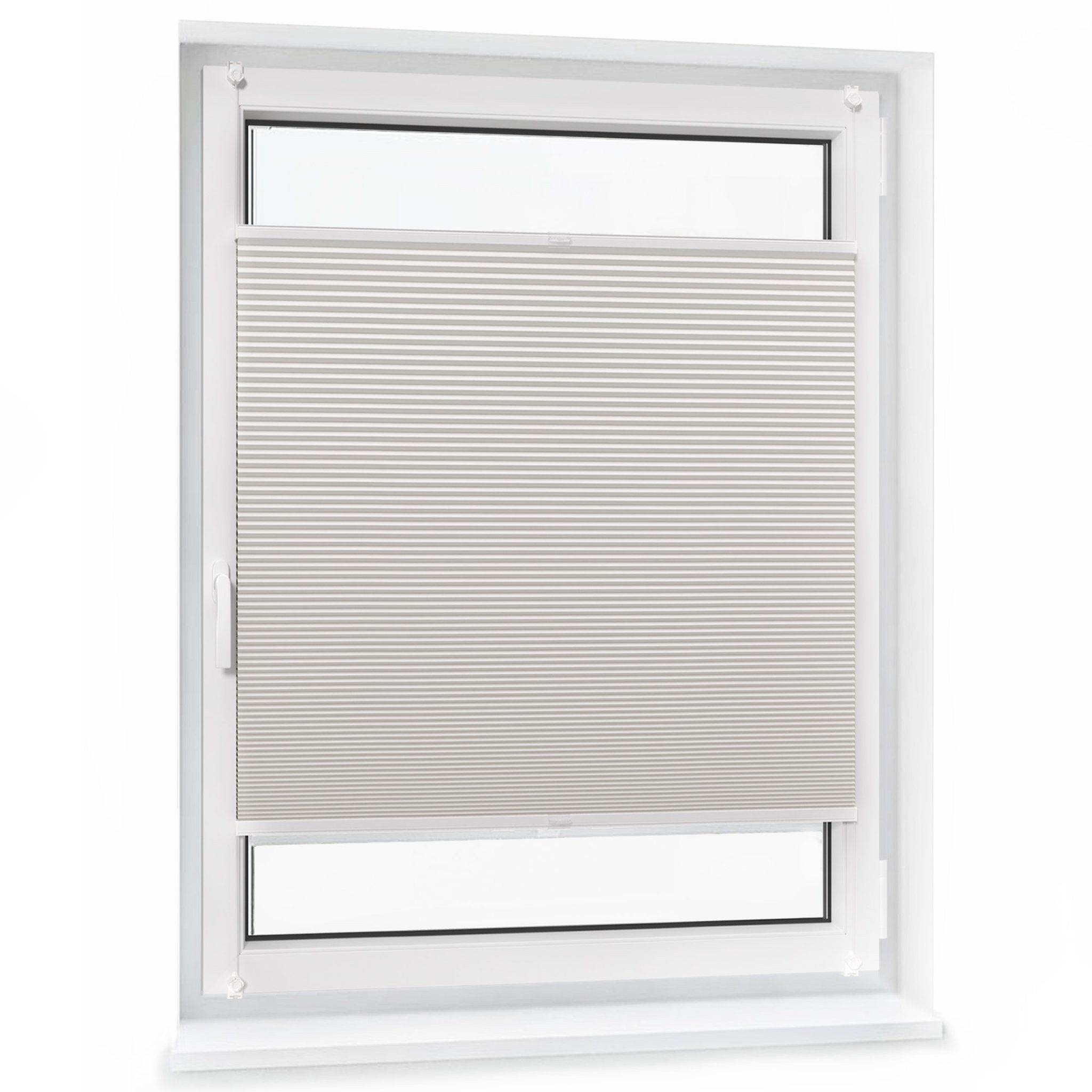 Lieferumfang | 1x Pure Wabenplissee, Farbe & Размер nach Wahl 2x Bediengriffe für Plisseebreite bis 900 mm 4x Bediengriffe für Plisseebreite ab 900 mm 4x Klemmträger für Fensterflügel mit einer Breite von 17 - 22 mm 1x Anleitung |