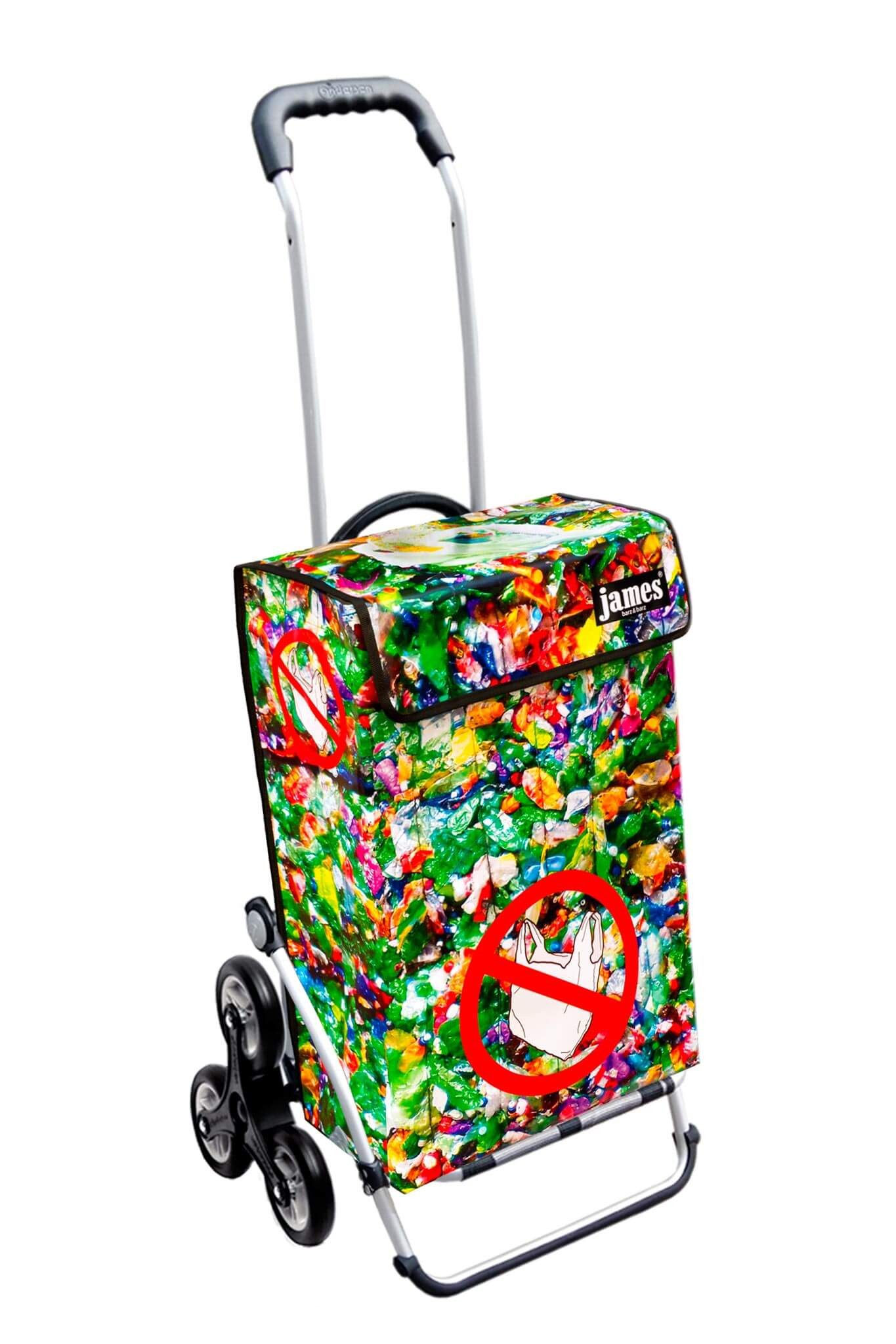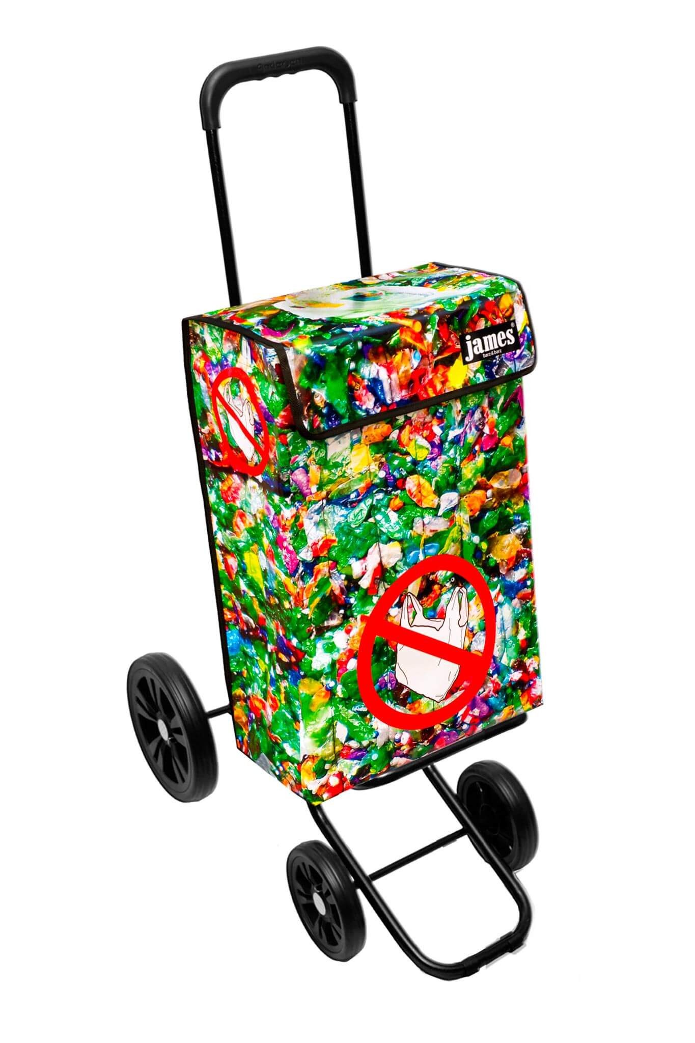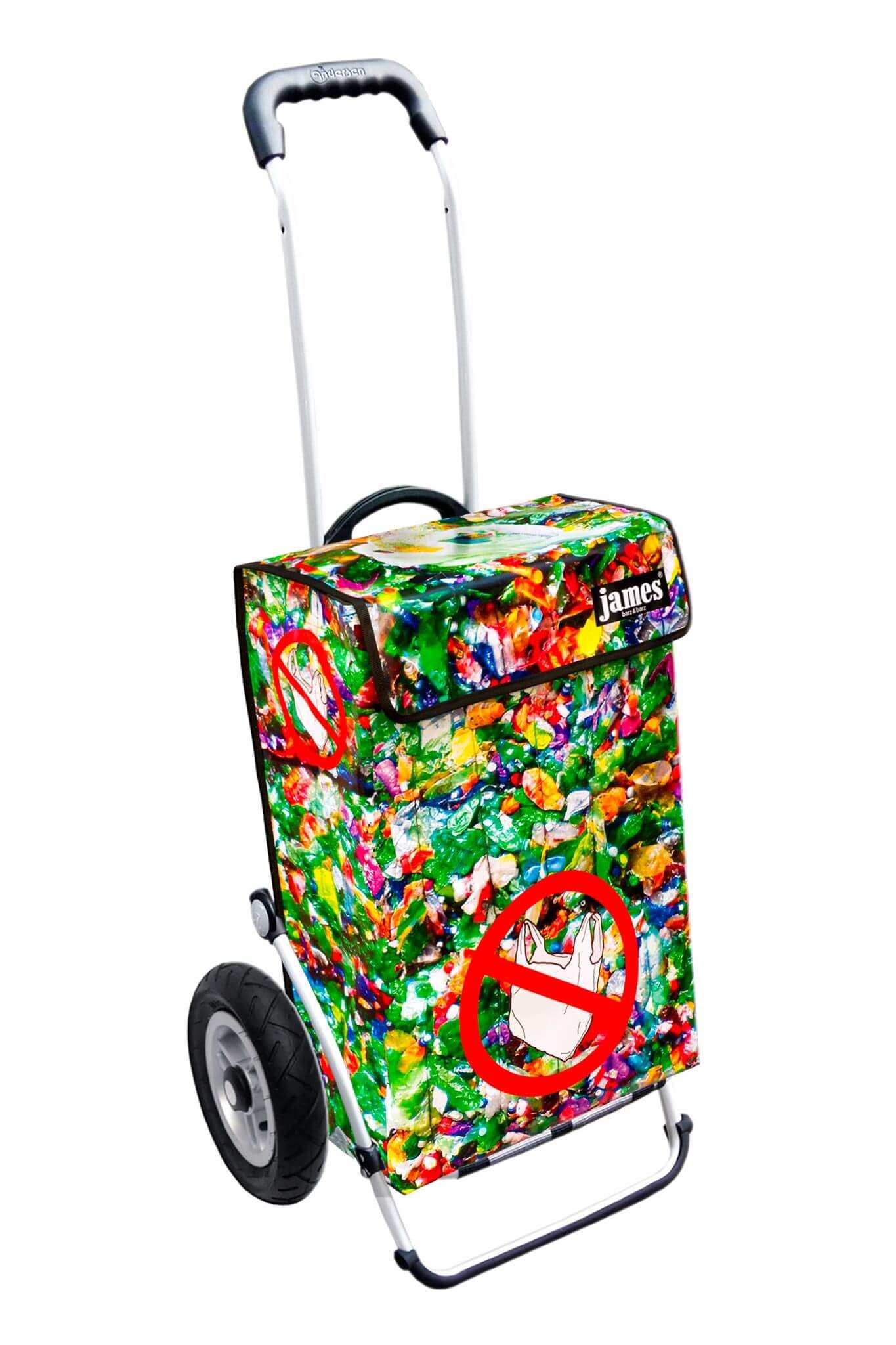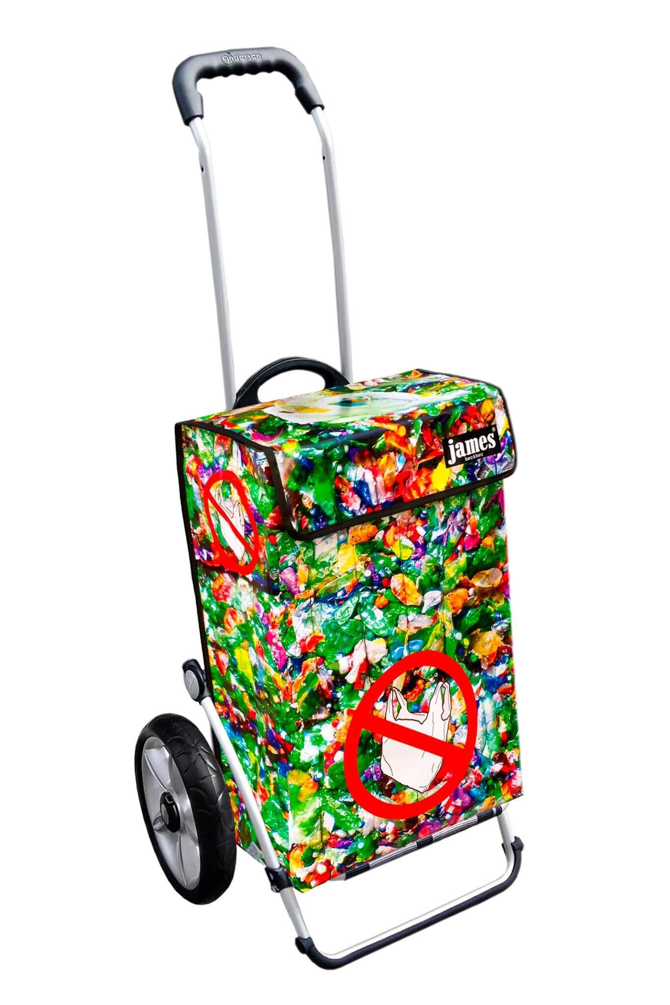 Es sieht aus wie bunte Blumen - es ist aber gepresster Plastikmüll, der sich unzersetzbar stapelt und unsere Umwelt bedroht. James hilft, Plastiksäcke zu vermeiden, und dieser James trägt seine Message stolz auf seinem Bauch!