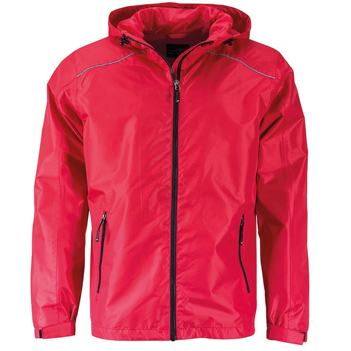 Wind- und wasserdichtes Gewebe (3.000mm Wassersäule) mit TPU Beschichtung, atmungsaktiv und wasserdampfdurchlässig (1.500g/m²/24h), versiegelte Nähte, kontrastfarbige Reißverschlüsse, unterlegter Frontreißverschluss mit Kinnschutz, angeschnittene, verstellbare Kapuze mit elastischer Kordel, zwei Seitentaschen mit Reißverschluss, Innentasche, reflektierende Details an Kapuze, Vorder- und Rückenteil, Reißverschluss zur Rückenveredelung, Oberstoff: 100 % Polyester, Futterstoff: 100 % Polyester