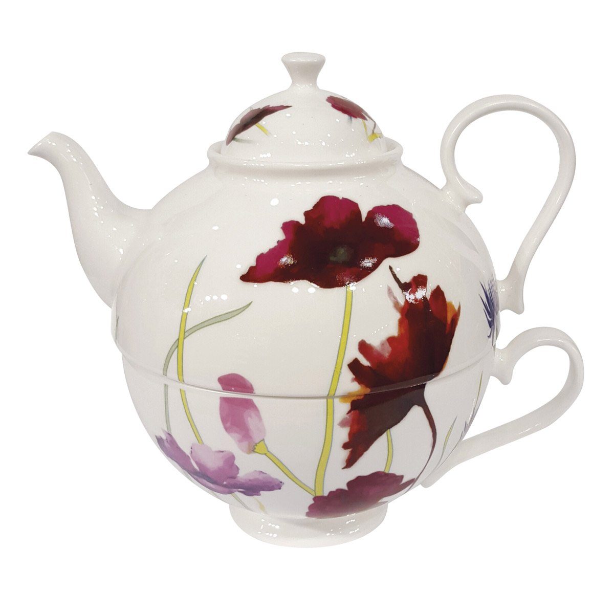 Single-Teeset aus Kanne und Tasse – für die kleine Auszeit zuhause. Genießen Sie Ihren Tee aus diesem formschönen Geschirr in klassischem Design mit farbigem Blumendekor. Hergestellt aus Porzellan, ist es ideal für den Alltag und für den Einsatz in der Mikrowelle sowie die Reinigung in der Spülmaschine geeignet. Maße 18 x 15 cm (BxH), Fassungsvermögen Kanne 0,7 Liter, Nutzinhalt 0,5 Liter