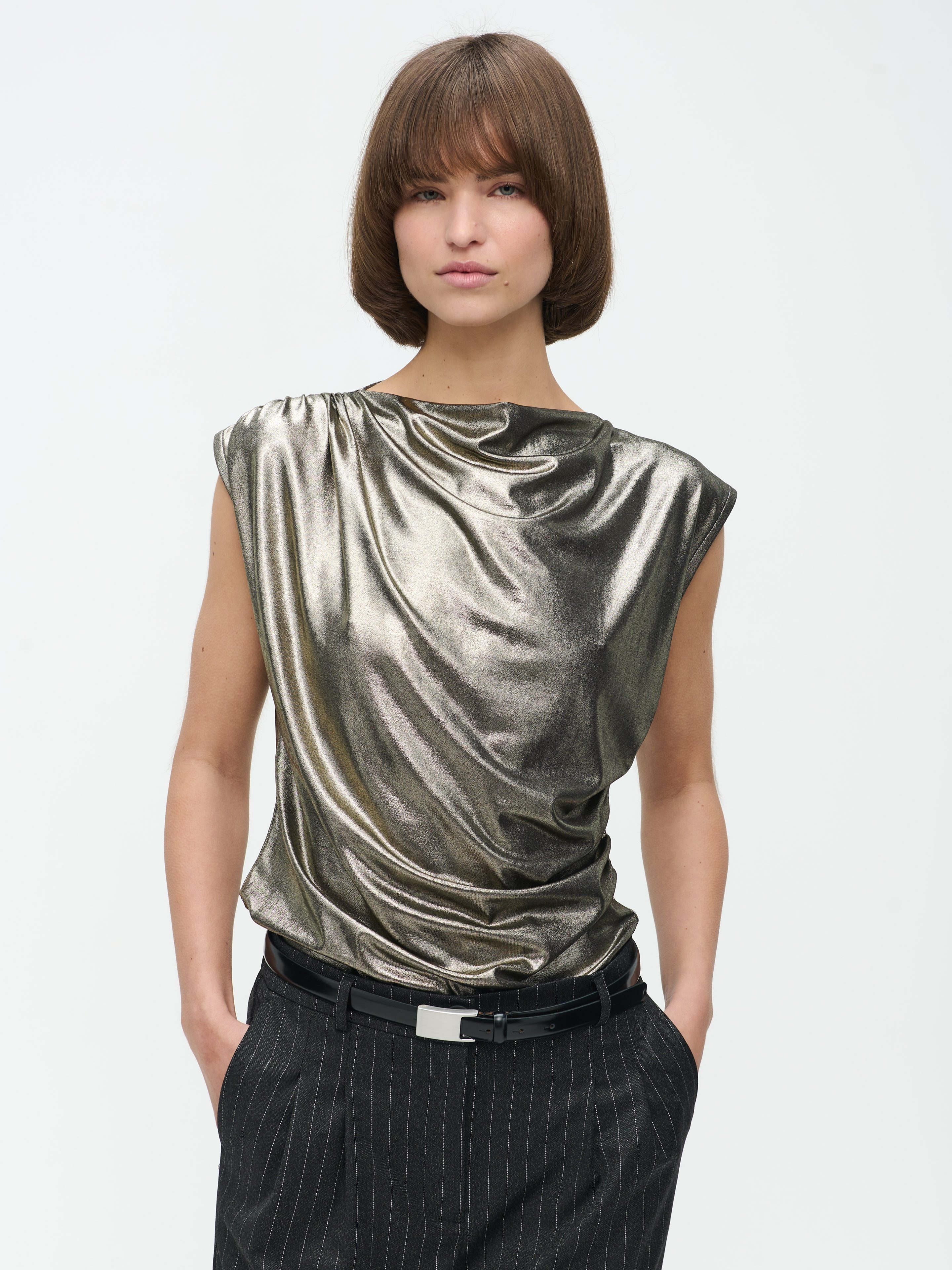 Nelly Top: Der Inbegriff von Eleganz aus unserer Studio-Kollektion: das Nelly Top. Es ist aus glänzendem Polyamid gefertigt, hat eine schmeichelhafte schmale Passform und ein schickes ärmelloses Design. Die auffällige Schulterfalte verleiht ihm einen Hauch von Raffinesse, während der seitliche Einsatz seine moderne Ausstrahlung unterstreicht. Einzelheiten zum Produkt Material: 95% PLS 5% EA Hergestellt in Europa Ausschnitt: fallender Ausschnitt Ärmel: ärmellos Eine Schulterfalte Размер & Passform Wahrheitsgemäße Размер Dehnbarer Stoff Gerade Silhouette, schmale Passform Das Model auf dem Bild ist 178cm-5'10“ groß und trägt Размер S
