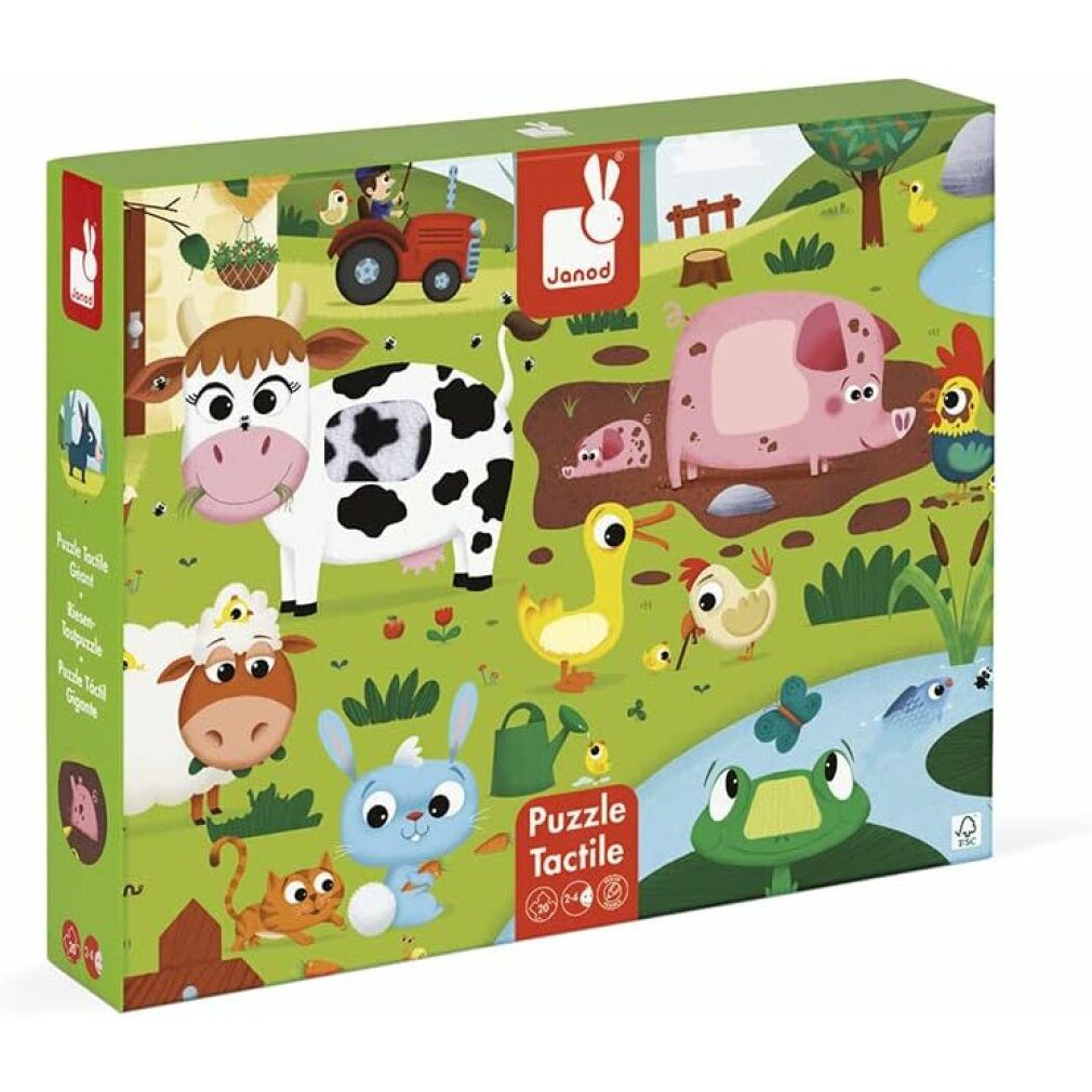 Kinderpuzzle JANOD mit dem Motiv der Tiere auf dem Bauernhof. Einige Stücke haben eine besondere Oberflächenbehandlung - eine Textur, die auch für echte Tiere charakteristisch ist. Puzzles entwickeln das logische Denken, die Aufmerksamkeit und das Gedächtnis der Kinder. Mit Hilfe von Puzzles lernen sie, Farben, Formen und Gegenstände zu erkennen, entwickeln handmotorische Fähigkeiten und lernen, die Beziehung zwischen Teilen und dem Ganzen wahrzunehmen. Dank der speziellen Teile des Puzzles lernen die Kinder, verschiedene Oberflächen durch Berührung wahrzunehmen. Die Размер des zusammengesetzten Puzzles beträgt ca. 65 x 50 cm