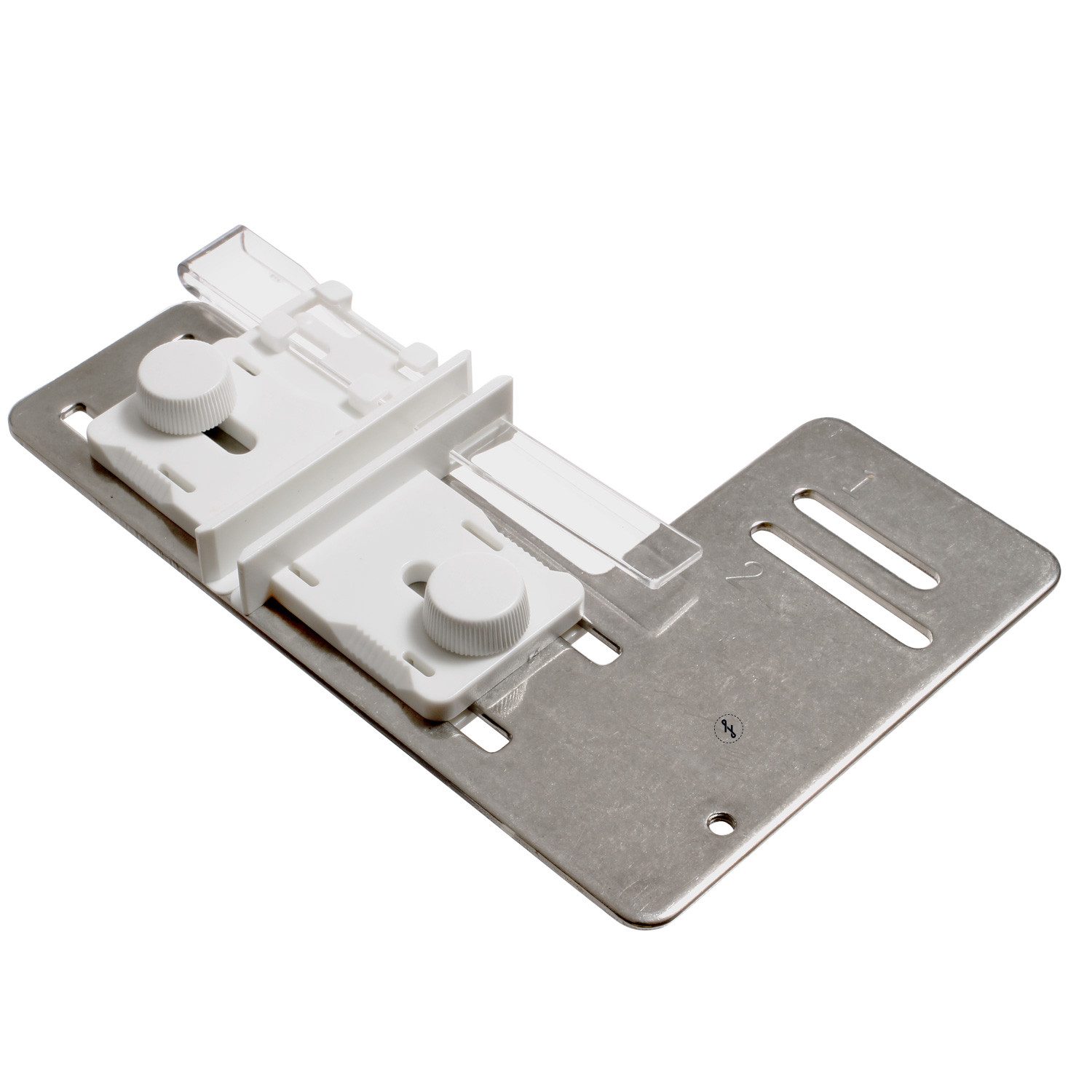 Sie läßt sich mühelos anbringen, indem Sie die Führung an der Stichplatte befestigen. Durch die automatische Bandzentrierung und der bequemen Bandeinlage, laufen Ihre Bänder immer exakt unter den Nähfuß und werden somit immer mittig mit den Stichen versehen.