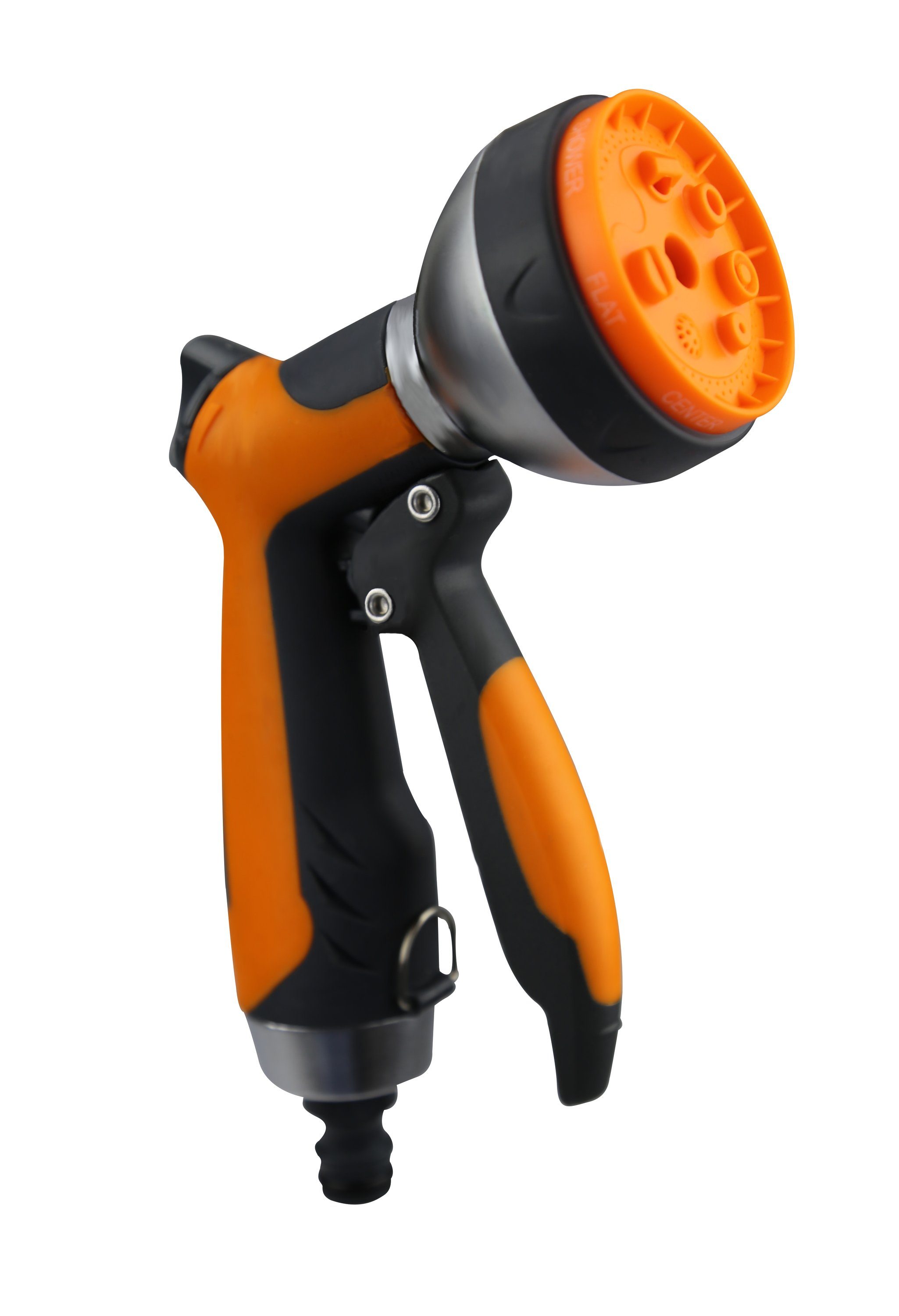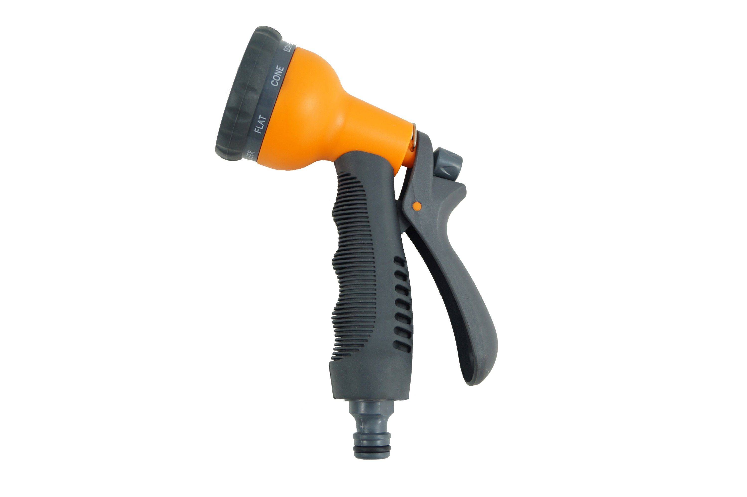 Dieser Aufsatz für Gartenschläuche findet mit den 7 verschiedenen Wasserstrahl-Einstellungen Gebrauch in jedem Garten. Der Griff des Aufsatzes ist beschichtet, sodass er äußerst gut in der Hand liegt. Die verschiedenen Bewässerungsoptionen ermöglichen dir beispielsweise zum einen effektiv Flächen im Garten zu reinigen, aber auch mit der Nebel-Funktion deine Pflanzen optimal zu bewässern.