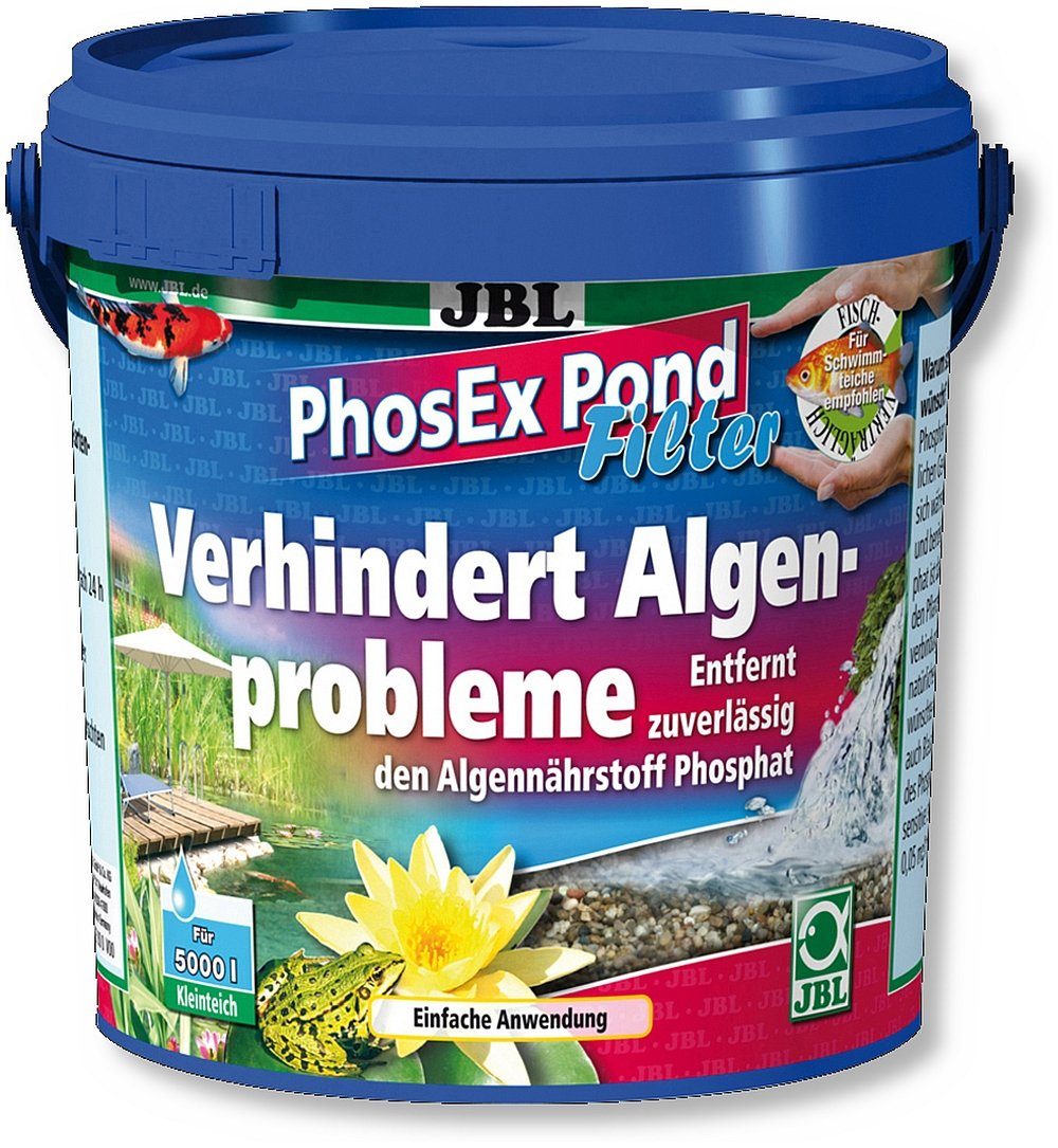 PhosEx-Pond verwandelt das Wasser in fisch- und pflanzengerechtes Teichwasser. Das Granulat für Teichfilter trägt zudem zur zuverlässigen Entfernung vom Algennährstoff Phosphat aus dem Teichwasser bei.