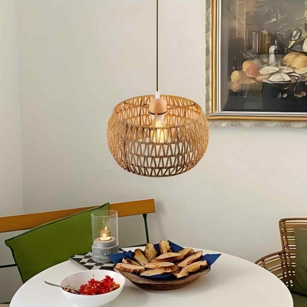 Funktionsweise | Handgeflochtene Rattan-Hängelampe mit E26-Fassung (ohne Lampe), höhenverstellbar bis 120cm und robustem Bambusring - der perfekte Boho-Look für Wohnzimmer oder Balkon mit warmem, gleichmäßigem Licht und einfacher DIY-Montage |