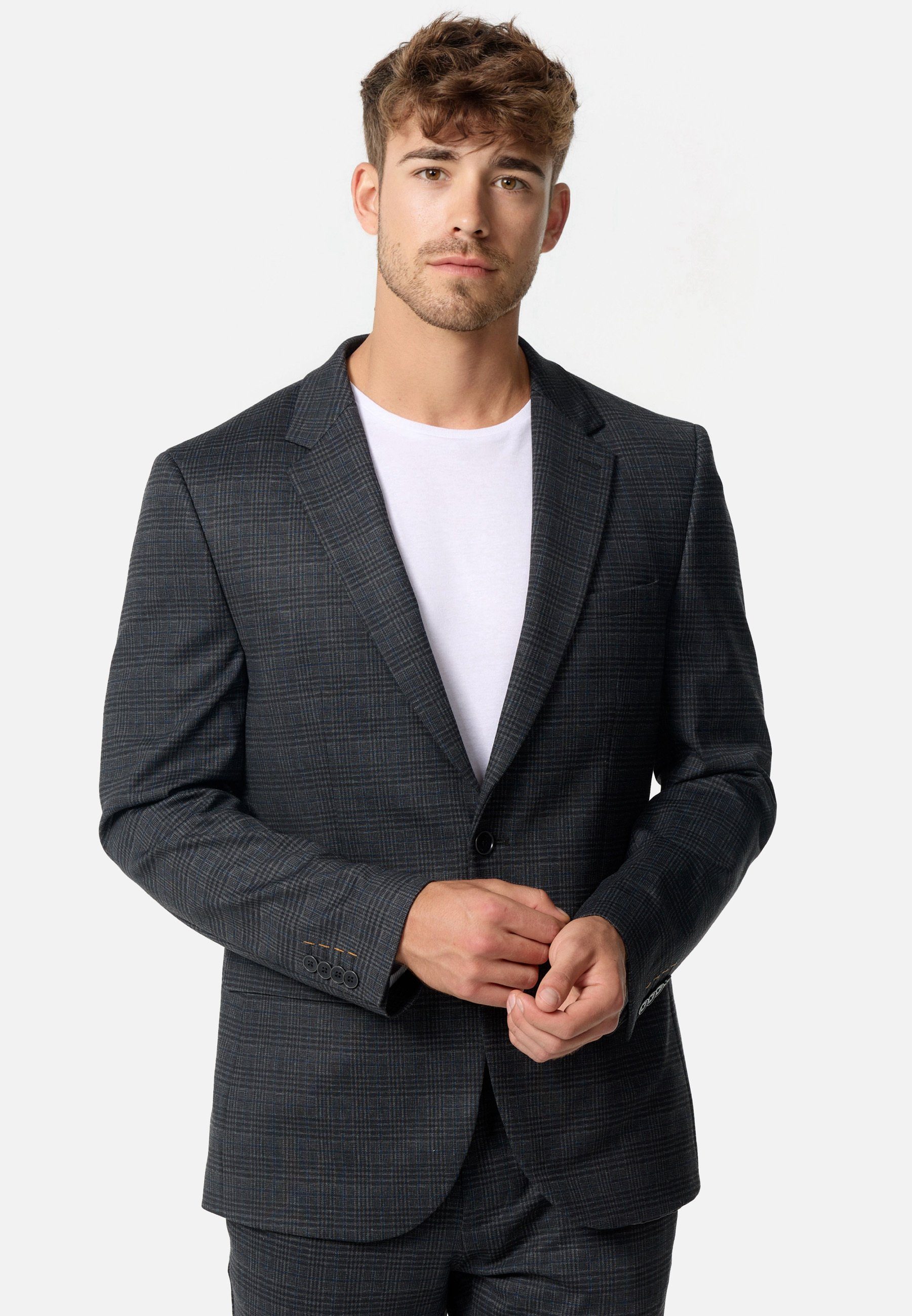 Das Herren-Sakko JFOliver verbindet klassische Eleganz mit moderner Passform und sorgt für einen souveränen Auftritt bei jedem Anlass. Dank des Tailored Fit sitzt es körpernah, ohne die Bewegungsfreiheit einzuschränken – ideal für stilbewusste Männer, die Komfort und eine klare Linienführung schätzen. Die dezente Musterung verleiht dem Sakko eine edle Struktur und sorgt für eine moderne, aber zeitlose Optik. Die hochwertige Materialmischung aus Polyester, Viskose und Elastan sorgt für angenehme Trageeigenschaften sowie Formstabilität und pflegeleichte Handhabung. Durch das glatte Innenfutter aus Polyester lässt sich das Sakko mühelos über Hemden oder Shirts tragen. Ob im Business-Kontext oder bei gehobenen Freizeit-Looks – dieses Sakko überzeugt mit vielseitiger Kombinierbarkeit und eleganten Details wie den farblich abgesetzten Knopfnähten.