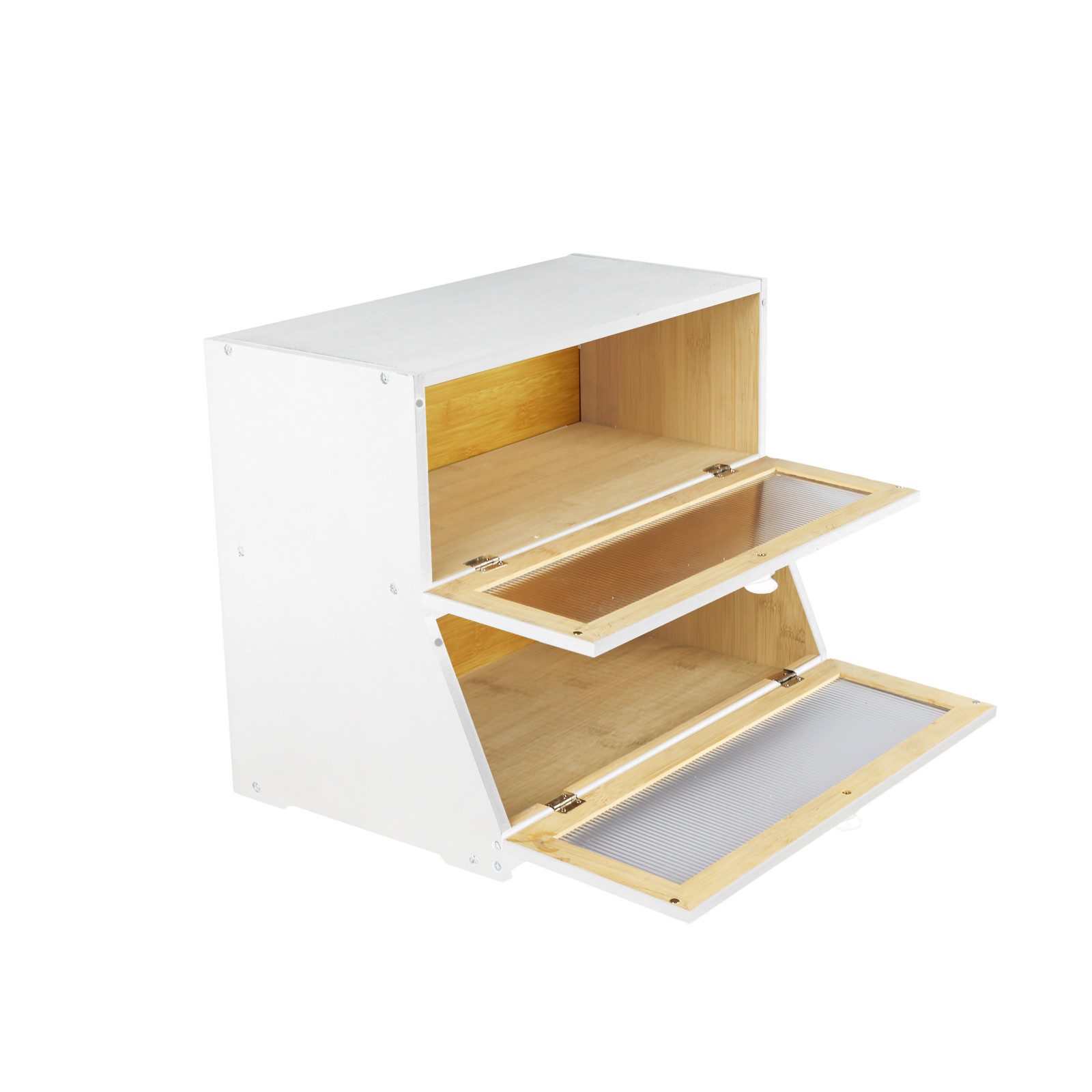 Multifuntionales Platzwunder - Du kannst unseren Brotkasten Holz auch als zusätzliches Küchenregal z.B. für Mehl, Nudeln oder Müsli nutzen. Zudem bietet dieser Brotkasten eine zusätzliche Ablagefläche oben auf dem Kasten.