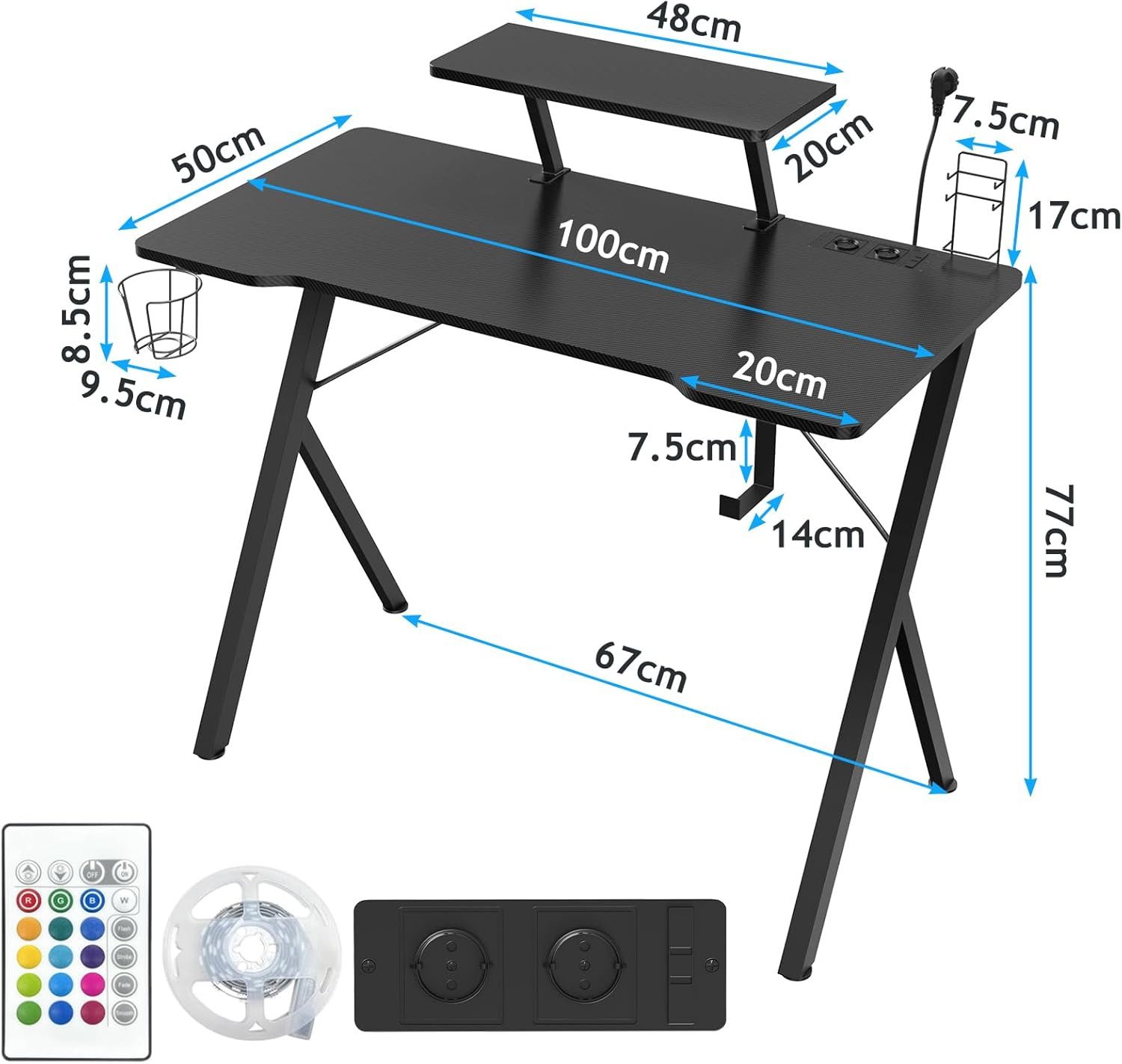 USB-Ladeanschlüsse und SteckdosenDer Schreibtisch ist mit 2 Ladestationen mit jeweils 2 Steckdosen und 2 USB-Ladeanschlüssen für Ihre elektronischen Geräte ausgestattet. Sie können Ihr Smartphone, Ihre Gaming-Ausrüstung oder Bluetooth-Geräte einfach und bequem aufladen, wenn Sie arbeiten oder Spiele spielen.