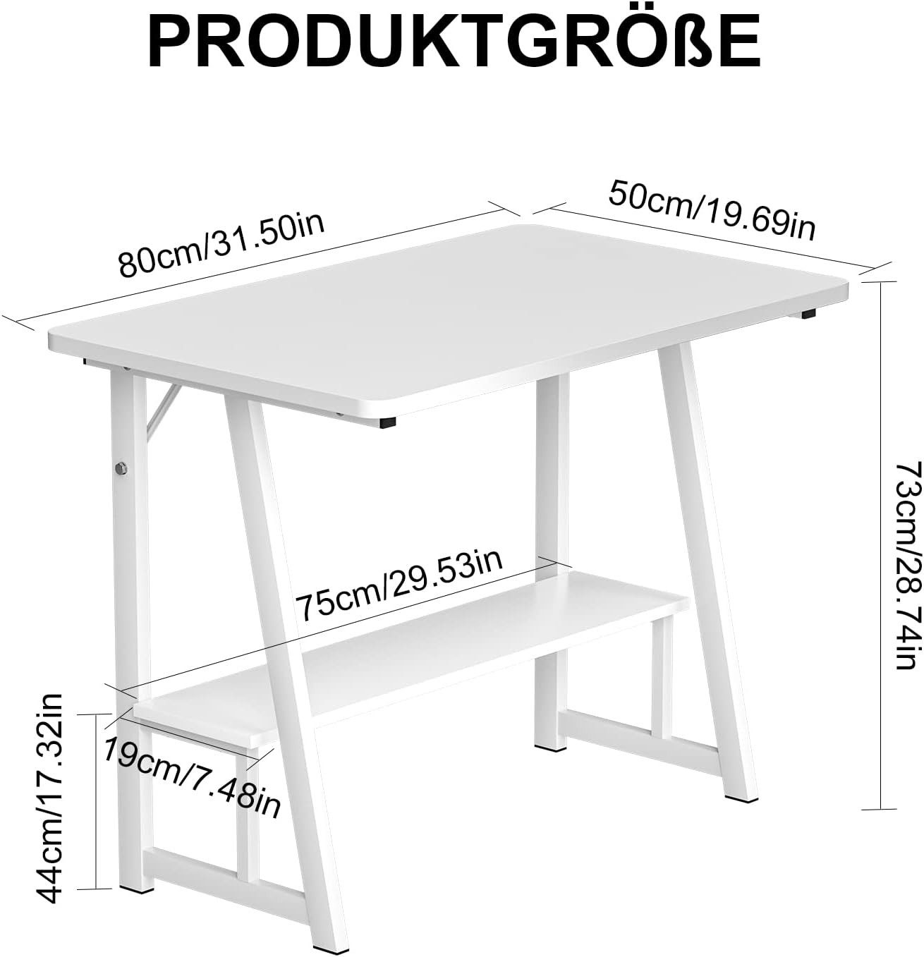 Hochwertige MaterialienDie Abmessungen der großes Schreibtisch: 80 x 50 x 73 cm, er besteht aus hochwertigen Metallrahmen, und die lackierte Oberfläche des Materials ist wasserdicht, feuchtigkeitsbeständig, kratzfest.Und es schützt vollständig Tisch von der täglichen Abnutzung,ist sehr langlebig.