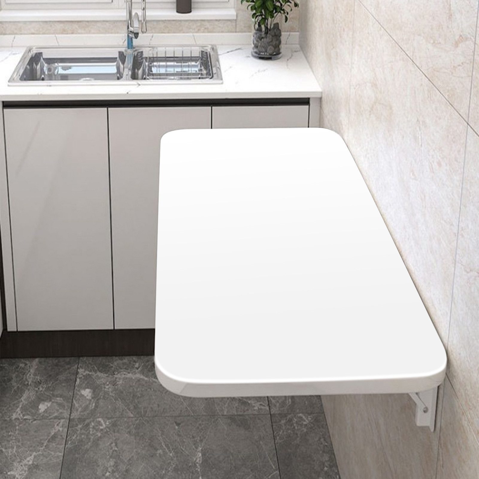 Platzsparend für kleine Räume: Durch die Montage an der Wand und kann zusammengeklappt werden, ist dieser platzsparende Klapptisch freundlich für enge Räume.