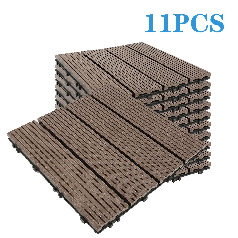 Jedes Paket enthält 11 Fliesen mit den Maßen 30 x 30 cm, die dank ihres praktischen Stecksystems schnell und problemlos verlegt werden können. Ein integriertes Kunststoff-Drainagesystem sorgt für einen zuverlässigen Wasserablauf und macht die Fliesen besonders wetterbeständig.