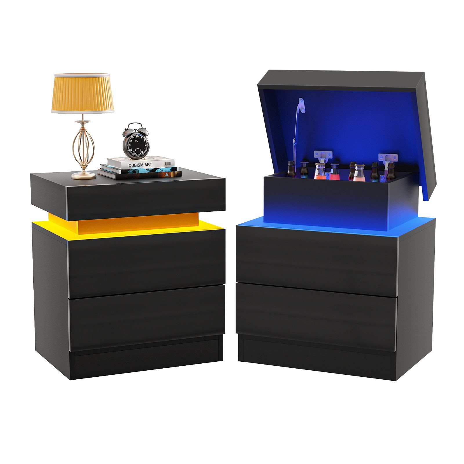 Farben Einstellbar- Nachtschrank kommt mit schönen mehrfarbigen RGB LED-Leuchten. 16 Farbwechsel, 16 Geschwindigkeitsanpassung, 4 Helligkeitsmodi zur Auswahl. Aus praktischen Gründen unterstützt dieser Nachttisch eine Infrarot-Fernbedienung zur Steuerung von LED-Leuchten.
