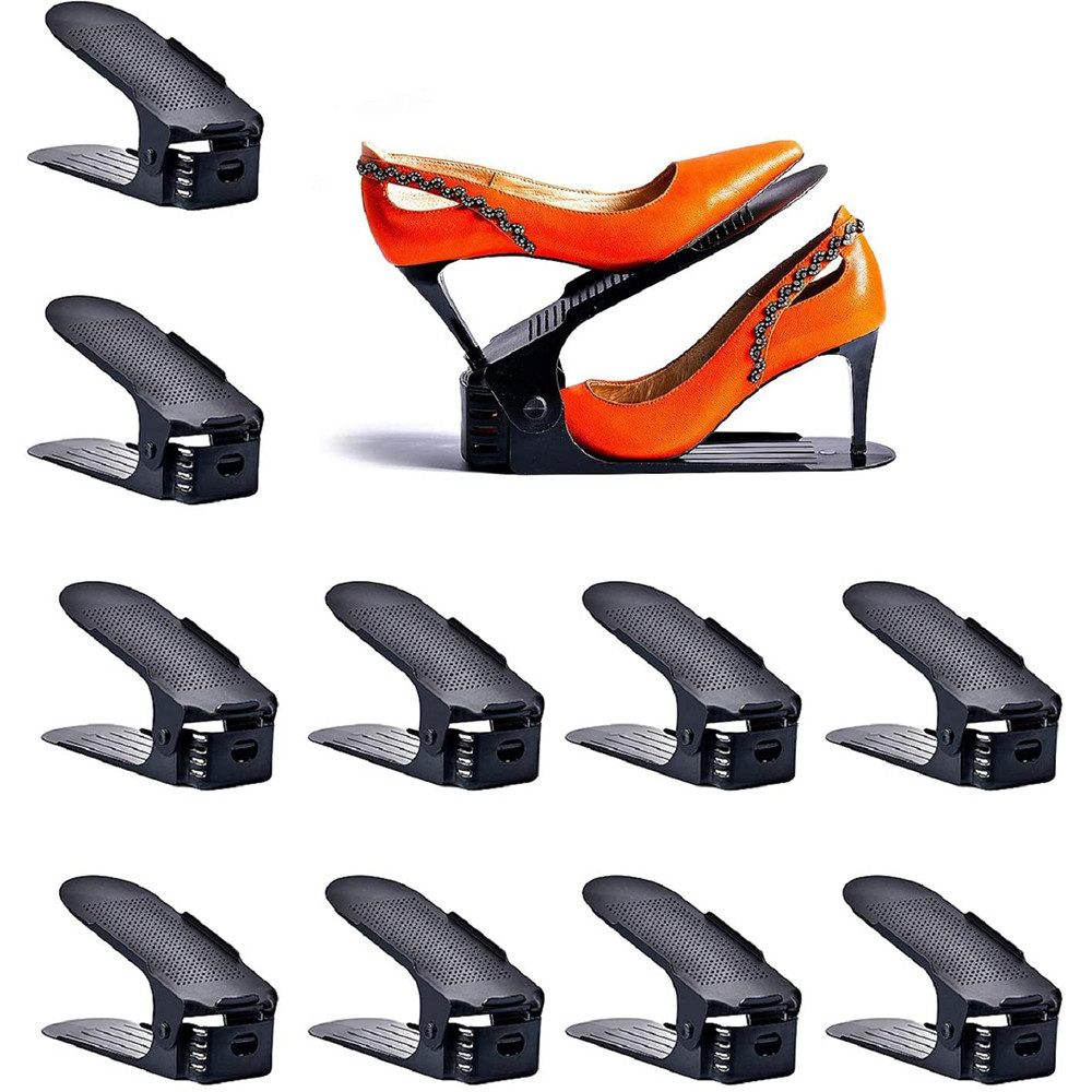 Das integrierte zweilagige Design kann das Schuhregal in zwei Schichten unterteilen, wodurch die Raumnutzung verbessert wird, ohne die Schuhe zu quetschen und zu verformen. Lhre Schuhe in Ordnung halten