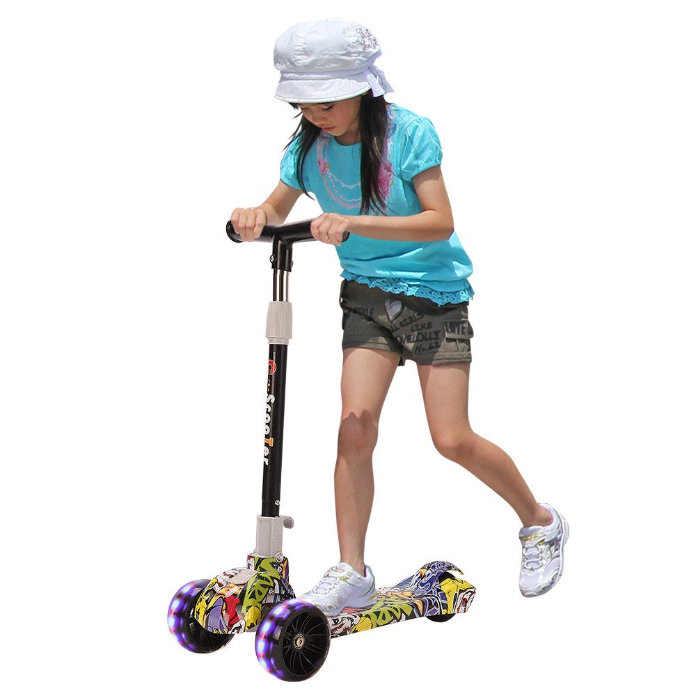 EFFEKTIVE STOßDÄMPFUNG: Verbreiterte und verdickte PU-Rad-Materialien sind sehr gut für Verschleißfestigkeit und Stoßdämpfung. Kinder könnten mit unserem Scooter problemlose ohne Schmerzen durch ungefähr alle Pflaster