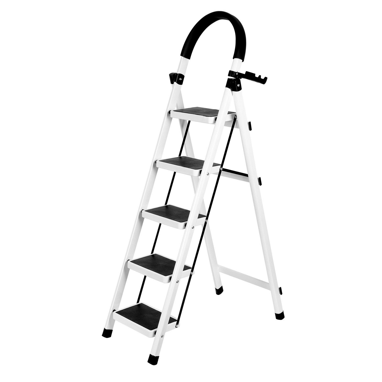 SICHERHEITS- UND STABILITÄTS-UPGRADE Die Stufenleiter besteht aus robustem Stahlmaterial und einer übergroßen oberen Plattform, die Fußunterstützung von Ferse zu Zehe bietet, Fußschmerzen und Ermüdung beseitigt und ein Sicherheitsschloss-Design zur Befestigung der Leiter verwendet. Wenn Sie es verwenden, drücken Sie einfach das obere Pedal nach unten, bis der Sicherheitsverriegelungsmechanismus automatisch einrastet.
