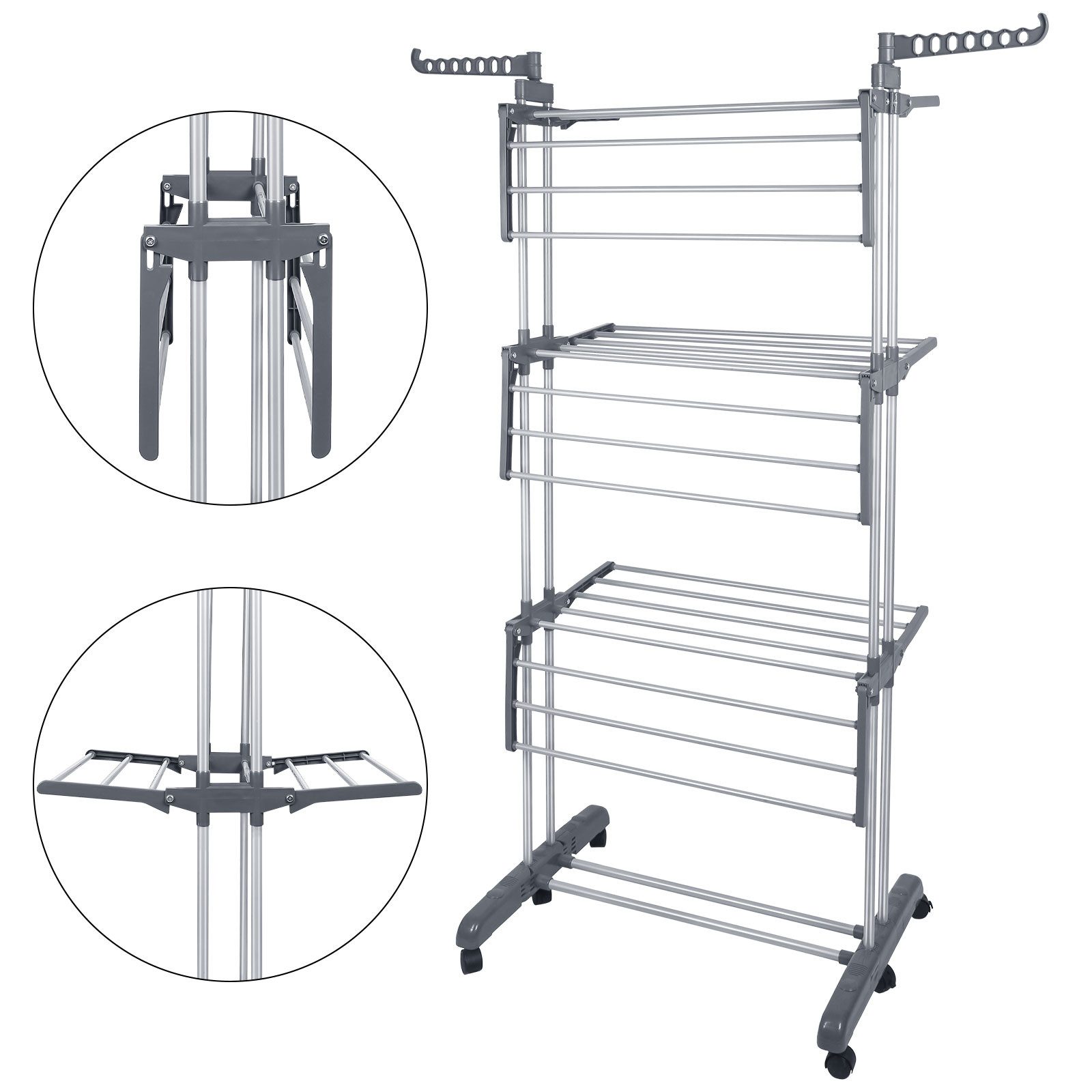 Dieser Turm-Wäscheständer für innen ist platzsparend, praktisch zu verwenden und macht es einfach, Kleidung, Handtücher, Bettwäsche und mehr zu trocknen. Die Einheit kann an einem heißen Sonnentag draußen zum Trocknen von Kleidung aufgestellt oder ganzjährig zum Trocknen an der Luft im Innenbereich verwendet werden. Der Turm-Wäscheständer ist eine tolle Alternative oder Ergänzung zu einem elektrischen Wäschetrockner und kann helfen, Stromkosten zu sparen - perfekt für große Familien.