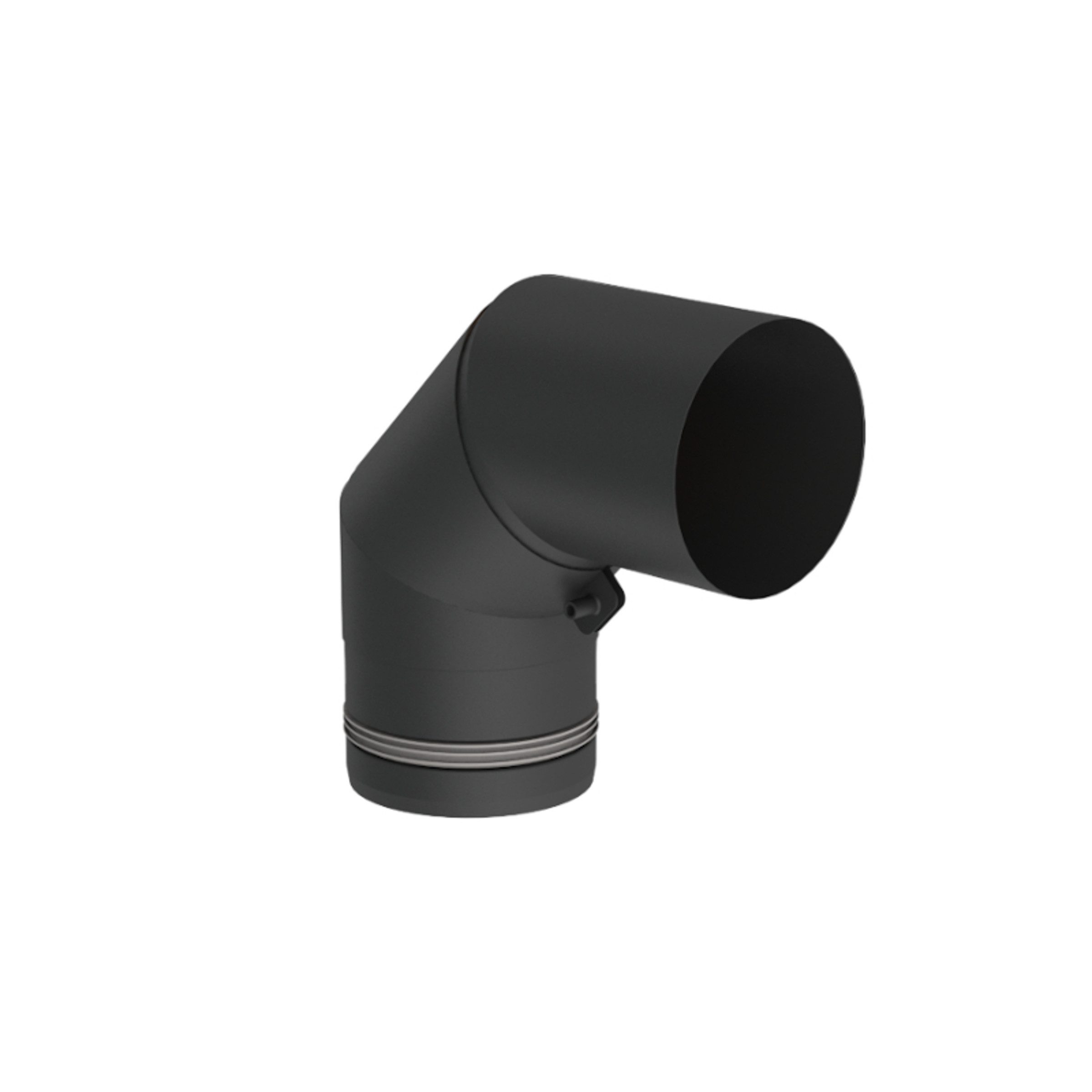Jeremias PELLET LINE Pelletofenrohr + Revision, 90° Winkel, starr Bauteil: Winkel 90° + Revision, starr Durchmesser: 80 mm Farbe: schwarz Anwendungsbereich: Pelletofen , Pelletkamin Jeremias PELLET LINE Ofenrohr ist ... industriell gefertigt aus hochwertigem Edelstahl einwandig kürzbar hitzebeständig bis 200 °C rußbrandbeständig feuchteunempfindlich druckdicht bis 200 Pa CE zertifiziert geeignet für Pelletöfen weitere Besonderheiten: Die Verbindung der Ofenrohre erfolgt über eine eingezogene Steckverbindung mit innenliegender Spezialdichtung die sich in einer eingeformten Sicke befindet. Diese Verbindung ermöglicht eine Überdruckdichtigkeit bis 200 Pa.  Die sichtbaren Oberflächen in den Farben Gussgrau oder Schwarz sind mit einer hitzebeständigen Silikonfarbe beschichtet. PELLET-Line Ofenrohre aus Edelstahl mit einer Wandstärke von 4 mm und  sind im Durchmesser von 80 mm und 100 mm erhältlich.