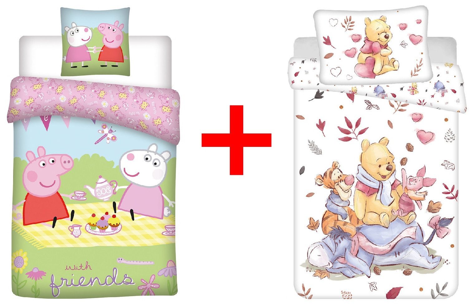 Marke: Disney Charakter: Bettwäsche-Sets Motiv: Peppa Wutz und Winnie Puuh Farbe: mehrfarbig Размер Bettdecken-Bezug: 100 x 135 cm Размер Kopfkissen-Bezug: 40 x 60 cm Material: 100% Baumwolle Lieferumfang: 2 x Bettwäsche-Sets