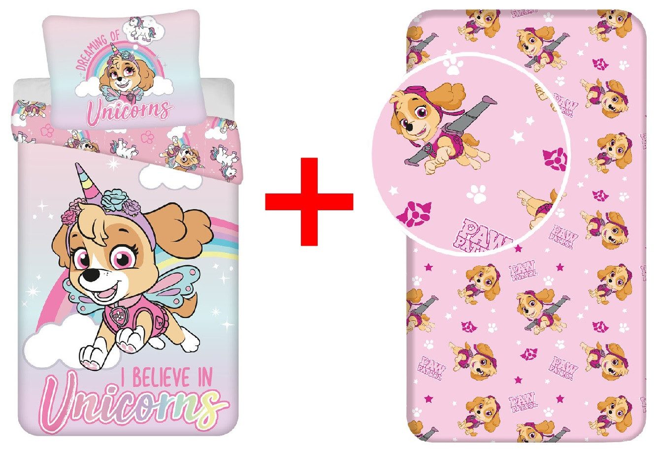 Bettwäschen-Set mit Skye Größe: Bettdecken-Bezug: 140 x 200 cm, Kopfkissen-Bezug: 70 x 90 cm Motiv: Die süße Skye als Einhorn verkleidet mit der wunderschönen Aufschrift "I believe in Unicorns"