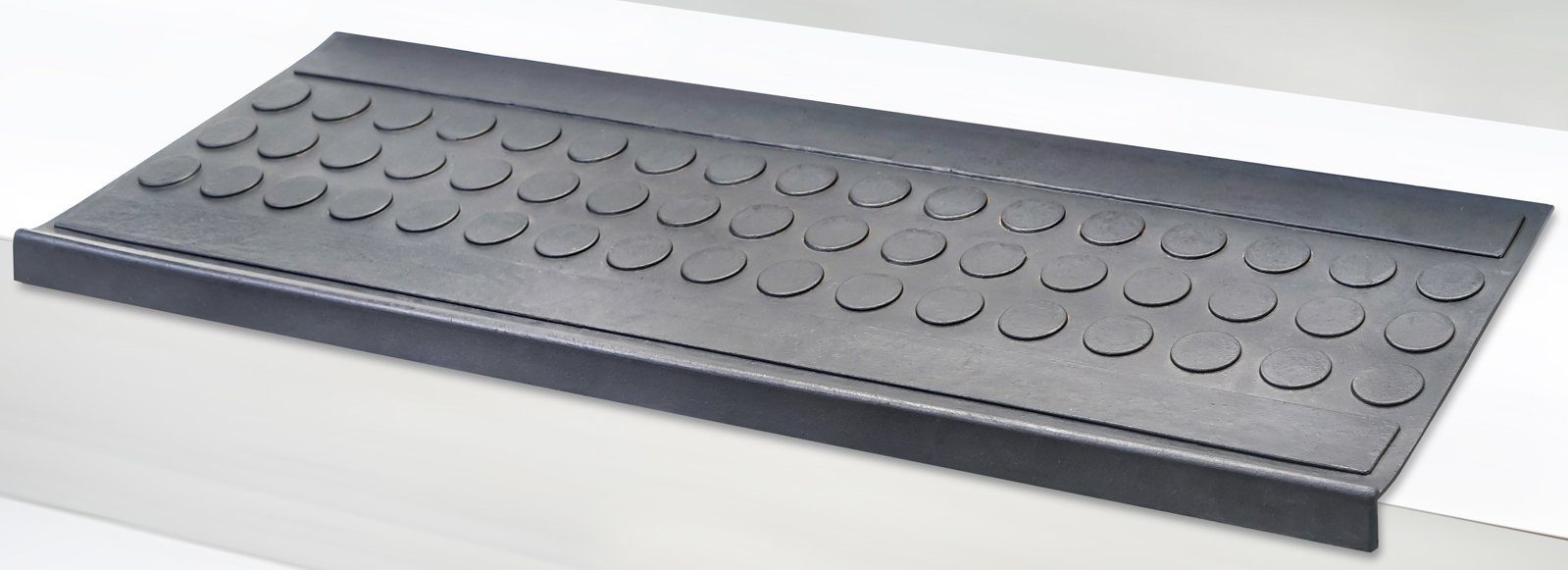 Stufenmatten aus 100% Gummi können belastet werden, sie verzeichnen nur einen sehr geringen Material-Abrieb, selbst bei starker Beanspruchung. Auf Grund der dichten Oberflächenstruktur bieten sie zuverlässige und beste Rutschsicherheit auf glatten, rutschigen, polierten Oberflächen von Marmor, Stein und Fliesentreppen.