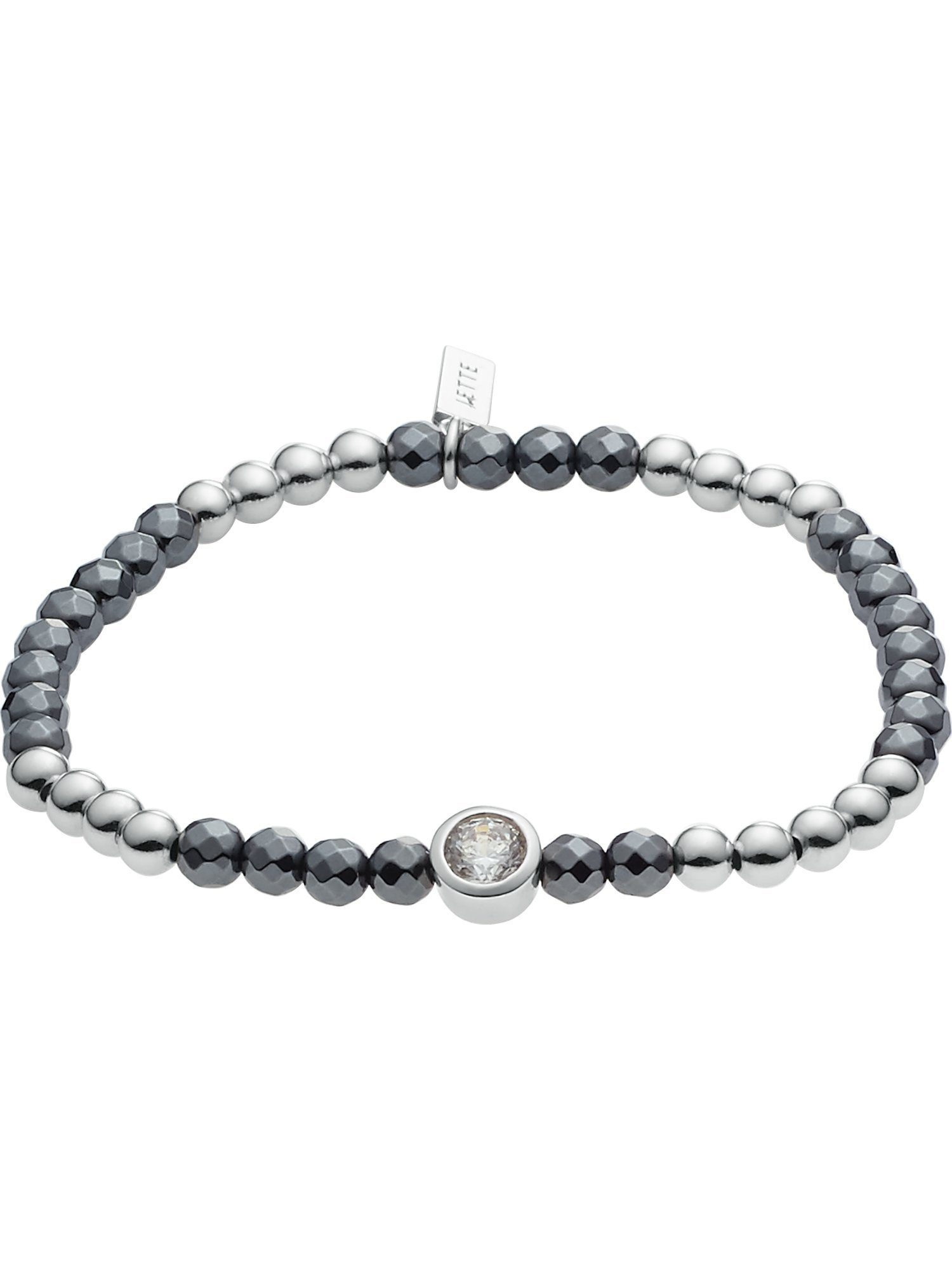 Farben, Formen und Facetten – es gibt kaum ein Detail, mit dem JETTE in diesem feinen Damenarmband nicht gekonnt zu spielen versteht. Das markanteste optische Highlight ist der Zirkonia*-Solitär, kunstvoll in Szene gesetzt durch poliertes und rhodiniertes 925er Silber. Mit seinen zweierlei Farben und Formen setzt das Schmuckstück diesen faszinierenden ersten Eindruck meisterlich fort. Dabei sorgen die ruhigen Töne des Armbands gekonnt dafür, dass die Vielzahl der Details hervorragend miteinander harmonieren, statt in optische Unruhe zu verfallen.
