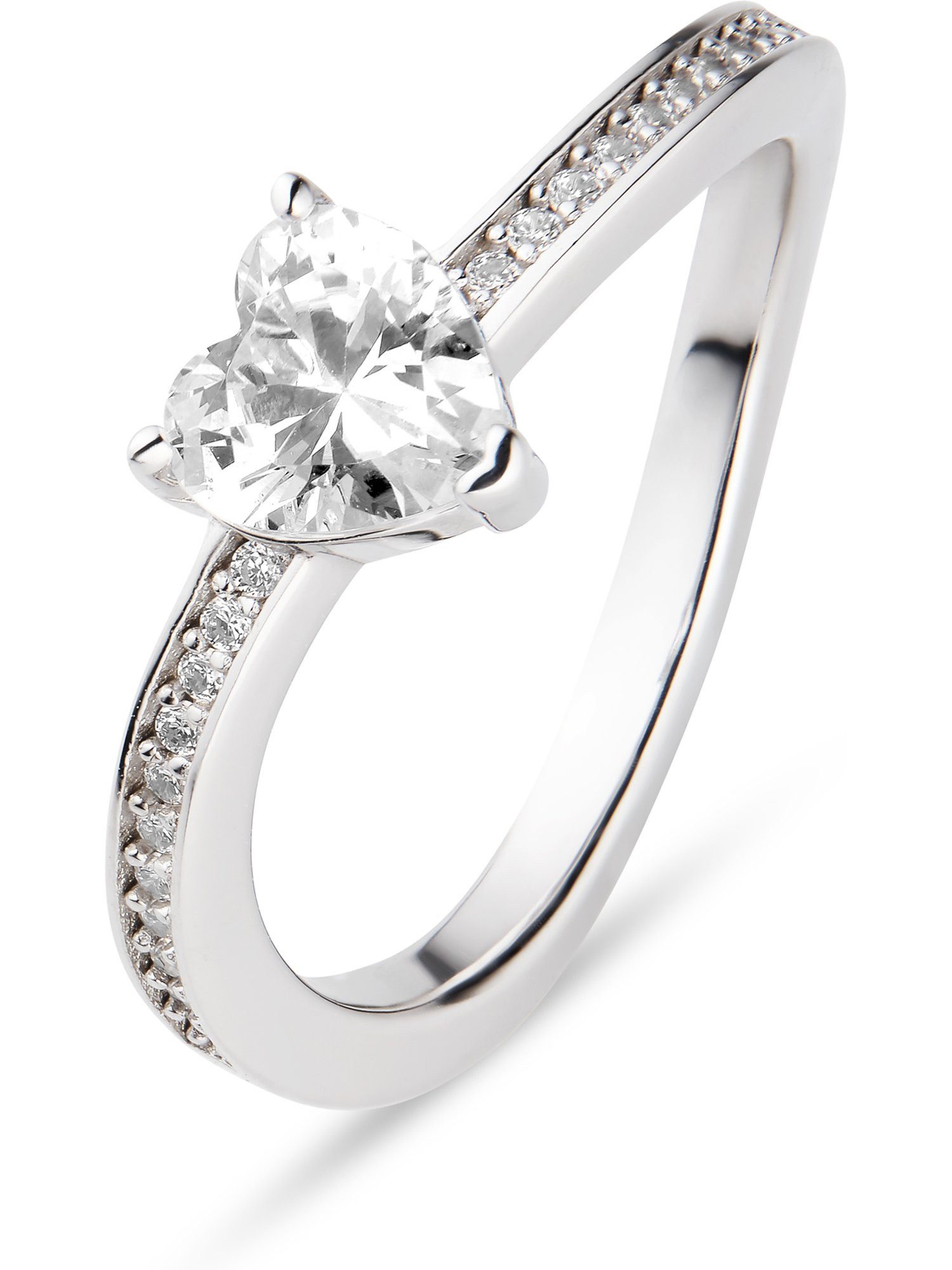 Highlight für deinen Look: Dieser Damenring aus der JETTE LOVE DIAMOND-Kollektion in 925 Silber, besetzt mit Zirkonia als funkelnder Eyecatcher. Die Farbe des Zirkonia ist ein strahlendes, klares Weiß, das zwar neutral genug ist, um mit fast allen Farben und Looks kombinierbar zu sein, gleichzeitig aber mit dem feurigen Funkeln zu begeistern vermag. Das Herz-Motiv fällt sofort ins Auge. Die Oberfläche ist mit einer haltbaren und abriebfesten Rhodinierung für einen silberweißen Schimmer und pflegeleichten Tragekomfort veredelt und ist poliert. Dieser Ring ist das perfekte Accessoire für deinen ganz persönlichen Stil – ein Hingucker, der mit jedem Outfit überzeugt.