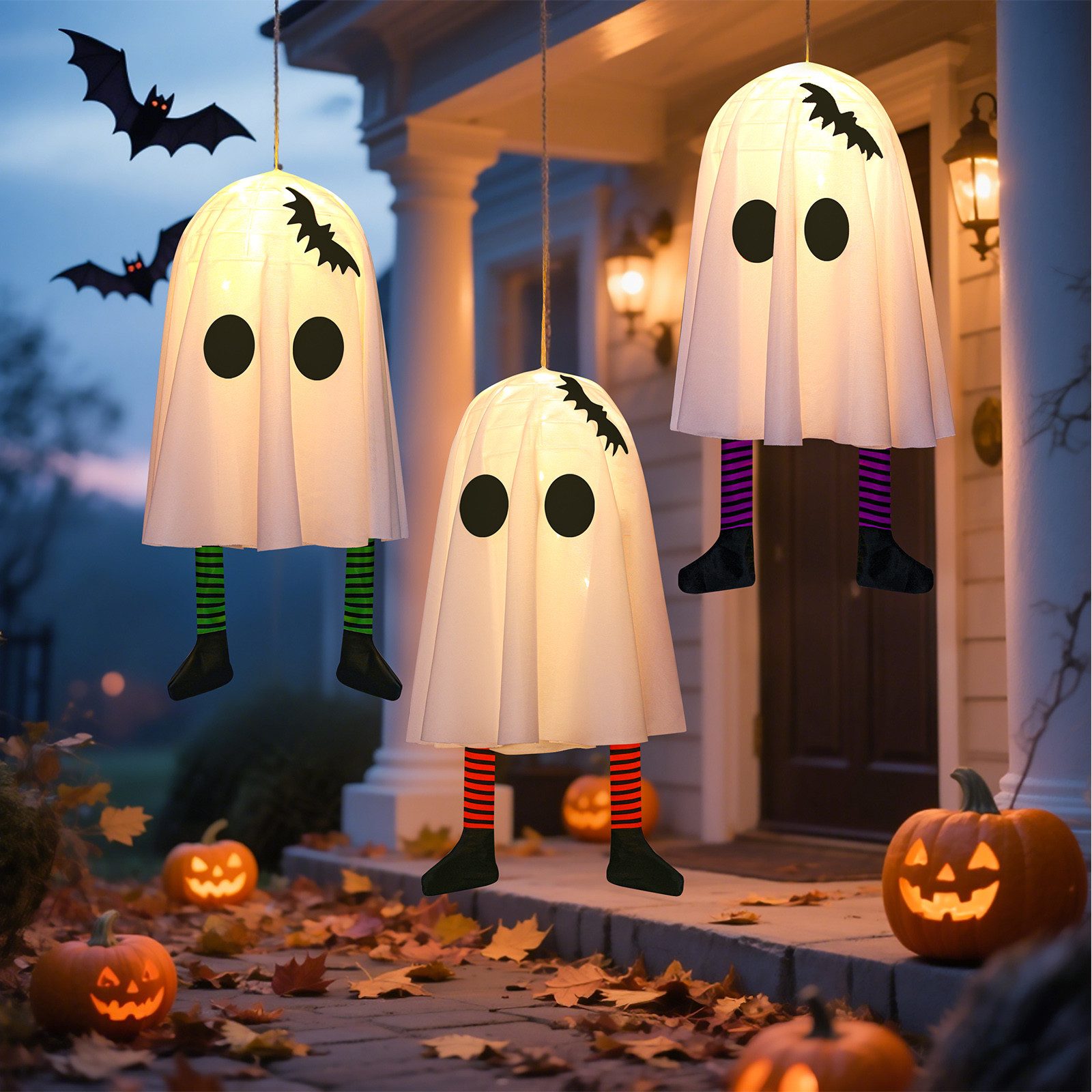 Es ist eine tolle Idee, sie im Garten, auf der Terrasse, an Dachvorsprüngen und Bäumen aufzuhängen. Die hängenden Geisterlichter werden vom Wind bewegt und schaffen bei Einbruch der Dunkelheit eine geheimnisvolle Atmosphäre. Die ideale Halloween-Dekoration!