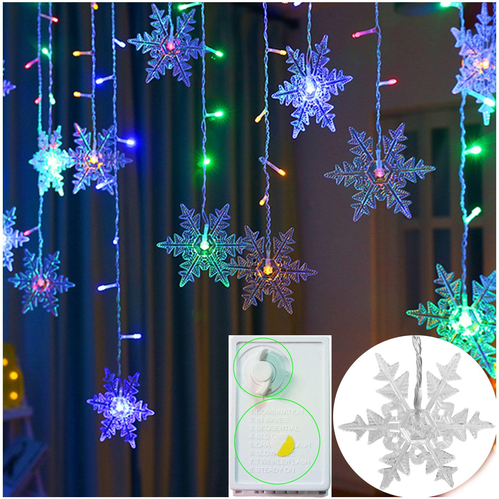 1 x Schneeflocken-LED-Vorhang-Lichterkette