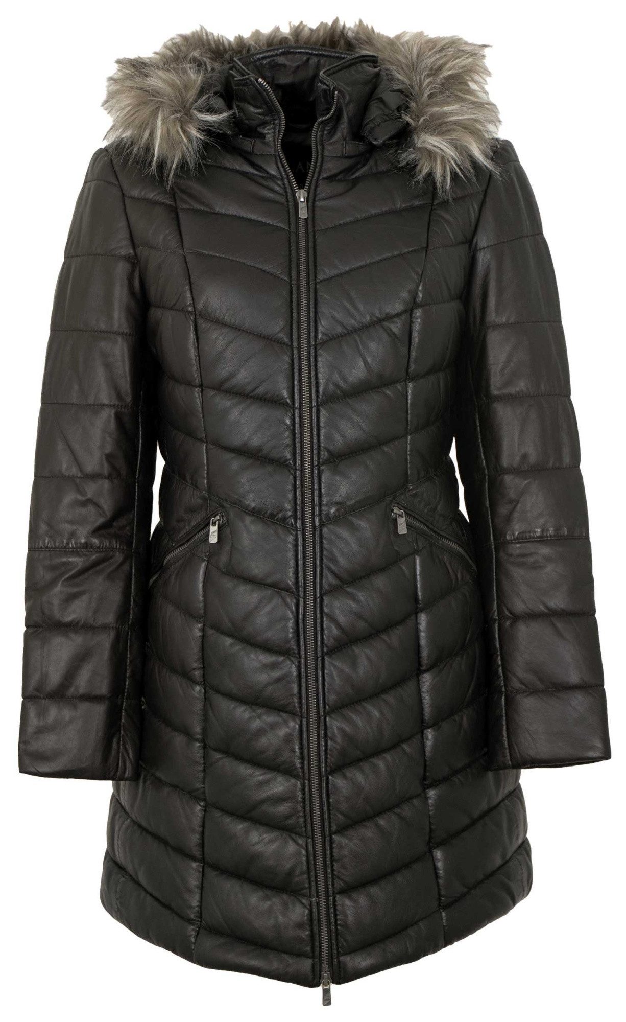 Besondere Merkmale | Jilani - Damen Ledermantel Steppmantel Kapuze Lammnappa schwarz |