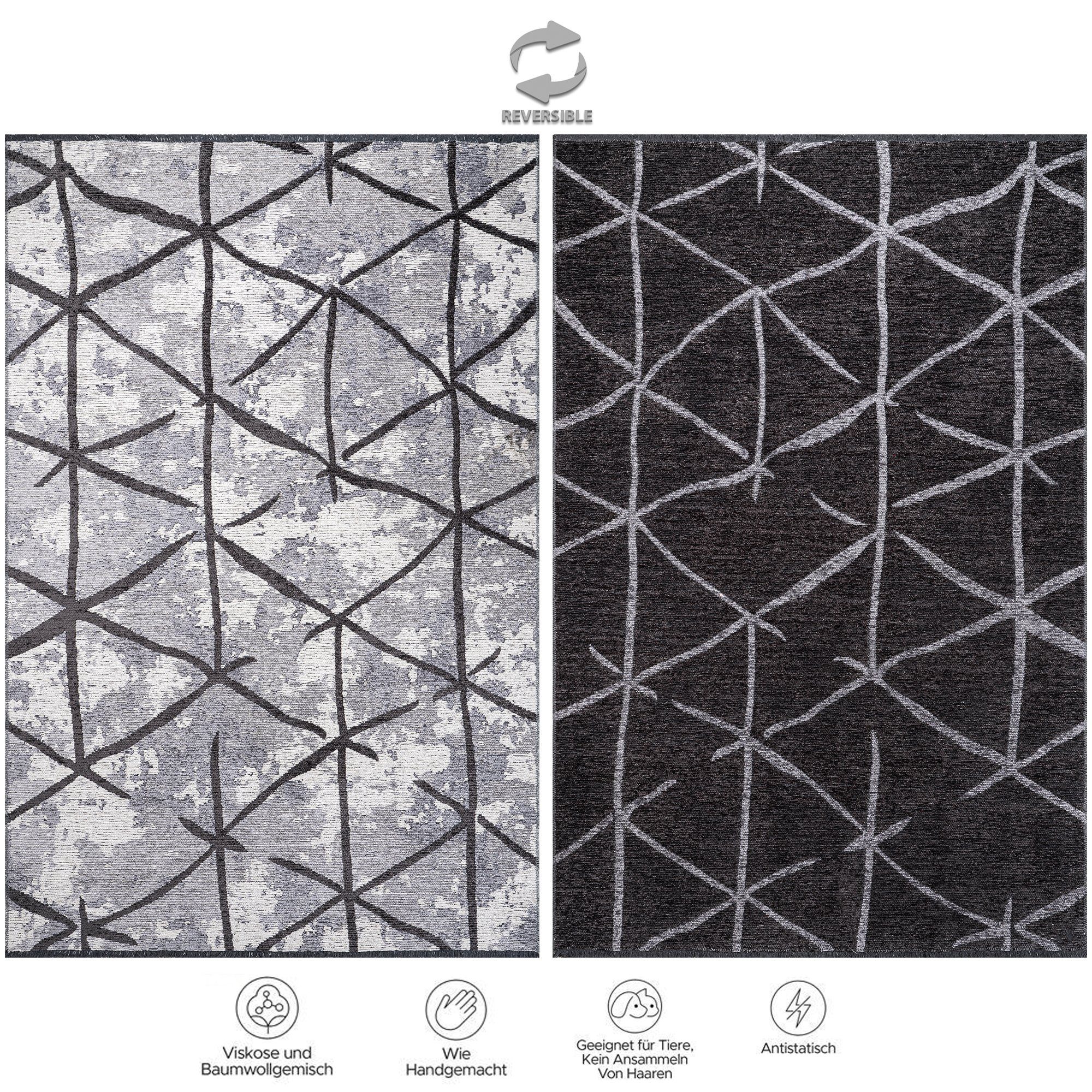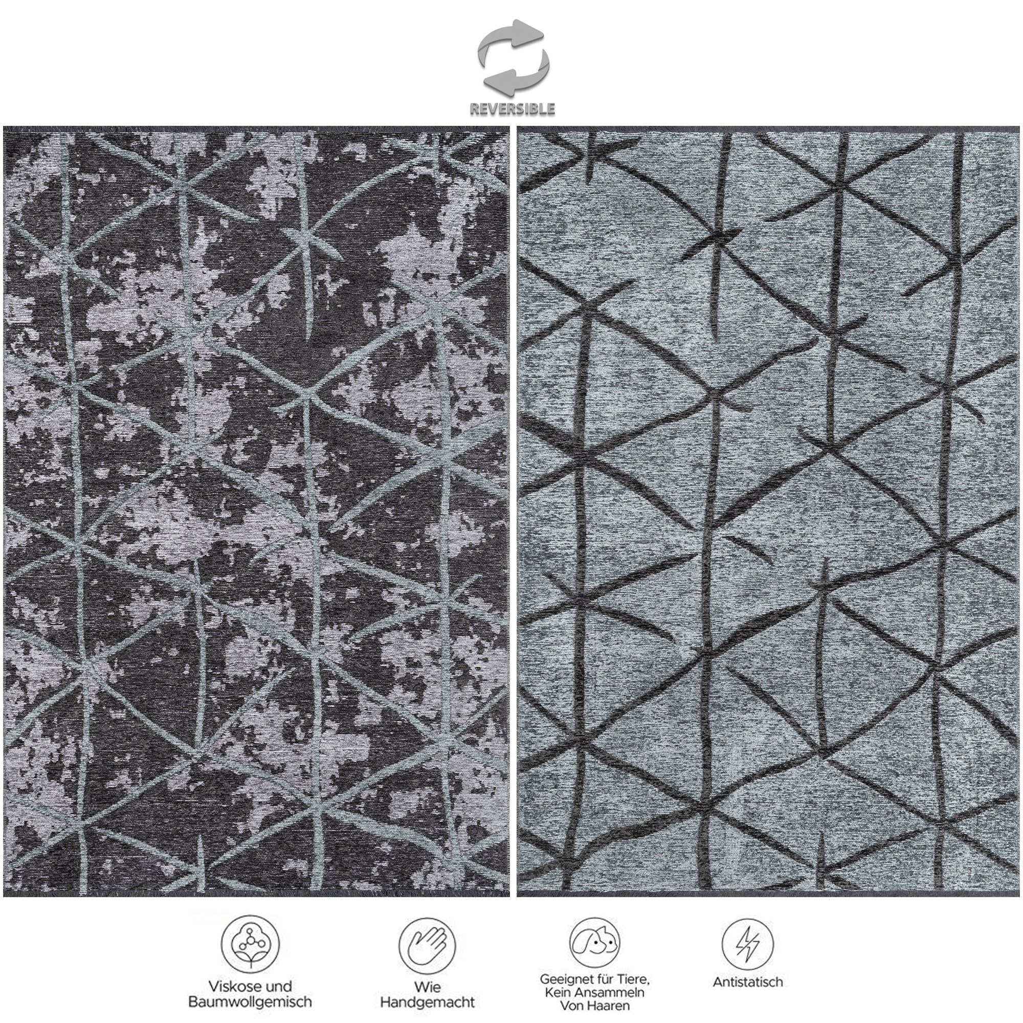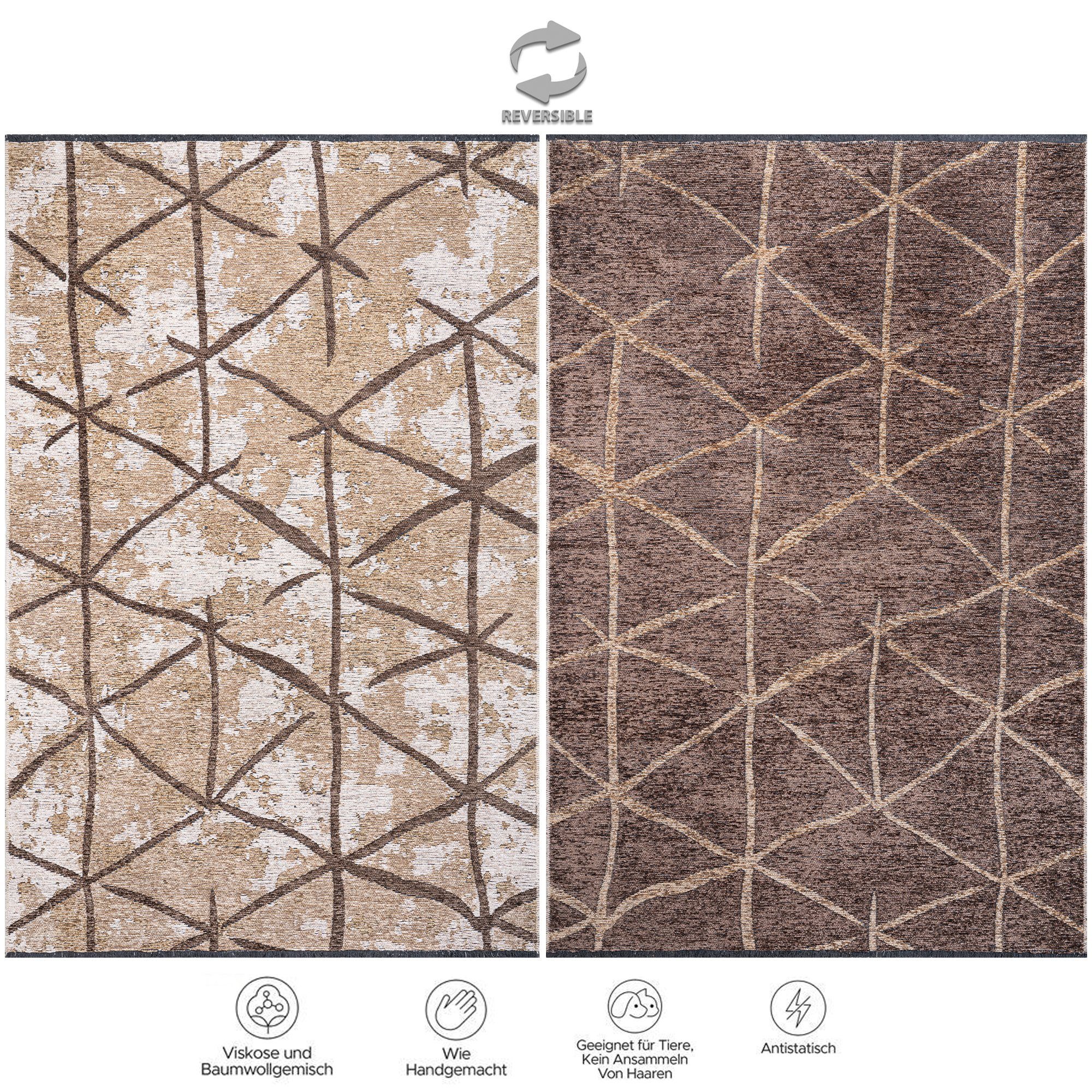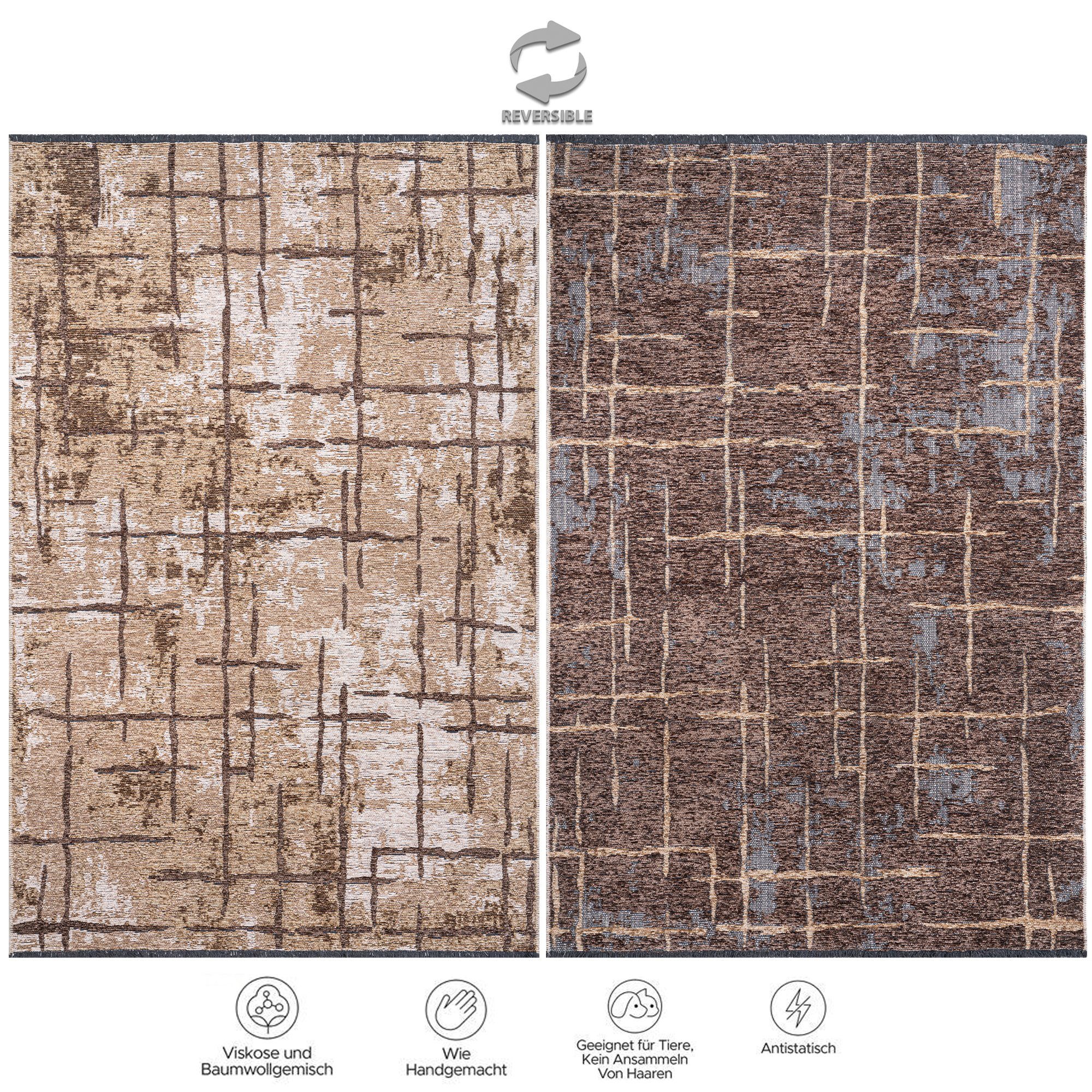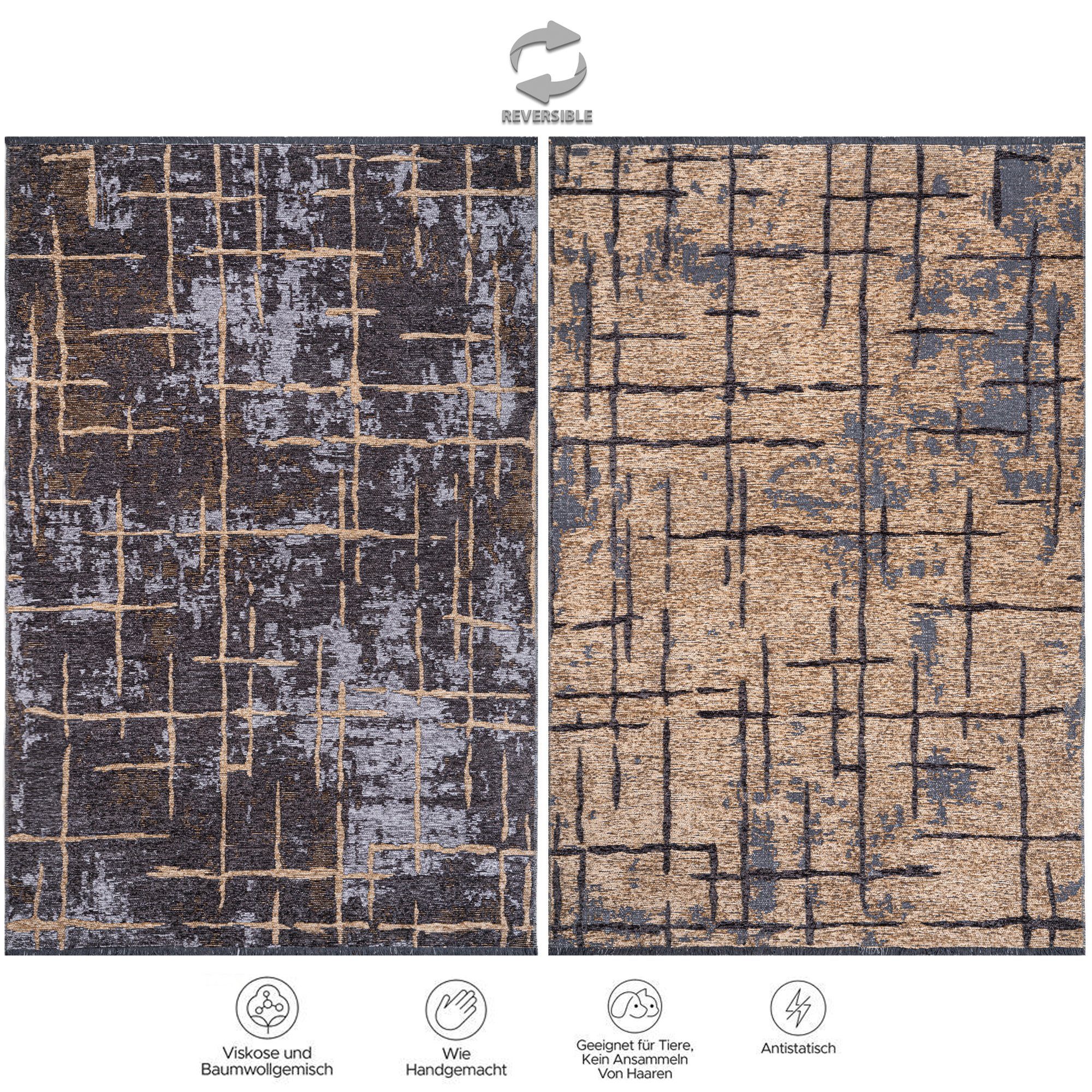 Dieser beidseitig nutzbare,hochfertig verarbeitete Teppich ist ein Kunstwerk für jeden Raum. Dieser Kuzflor erschient in Ihrem Wohnzimmer oder Schlafzimmer mit voller Aussagekraft.