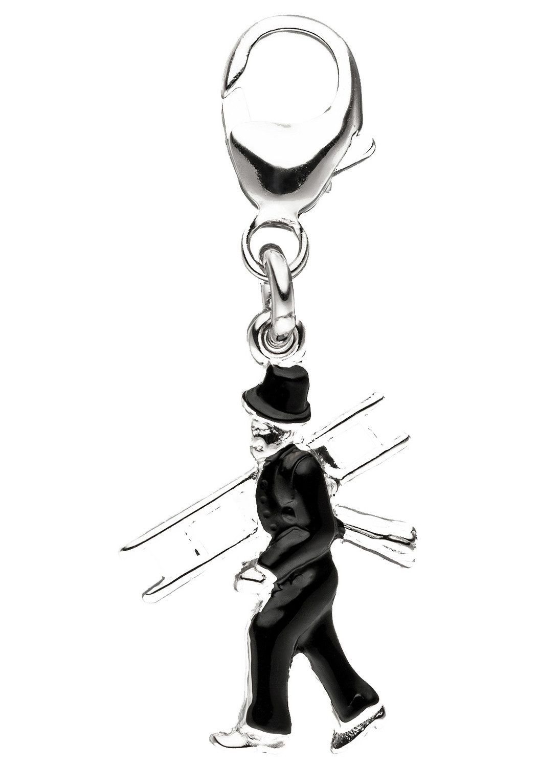 Einhänger / Charm 'Schornsteinfeger' aus 925 Sterlingsilber, rhodiniert, mit schwarzer Lackeinlage und Karabinerverschluss