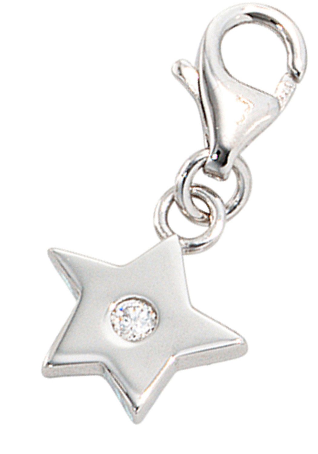 JOBO Charm-Einhänger Charm Stern, 925 Silber rhodiniert mit Zirkonia
