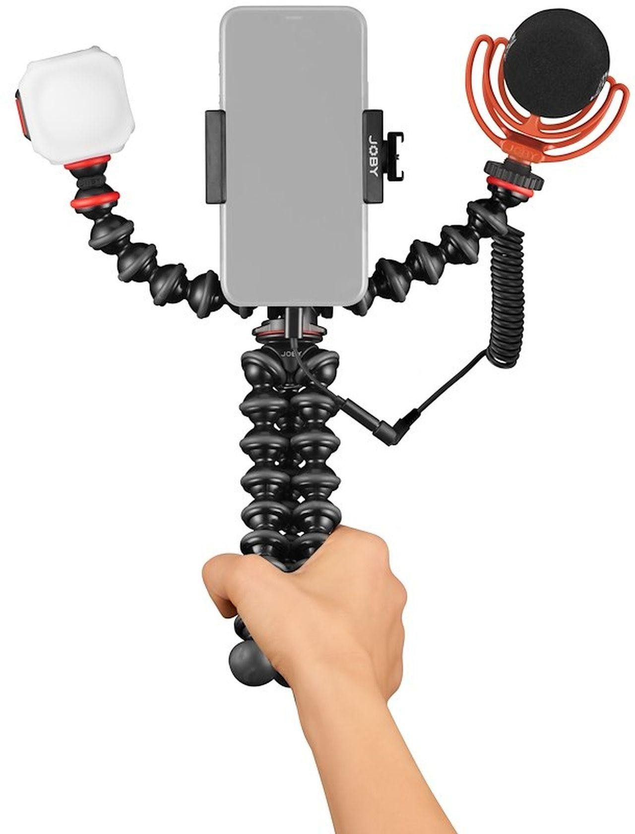 Das Joby GorillaPod Advanced Vlogging-Kit wurde für anspruchsvolle Smartphone-Content-Creators entwickelt. Produktbilder zeigen optionales Zubehör und Anwendungsbeispiele.